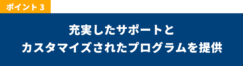 ・充実したサポートと個人向けにカスタマイズされたプログラムを提供