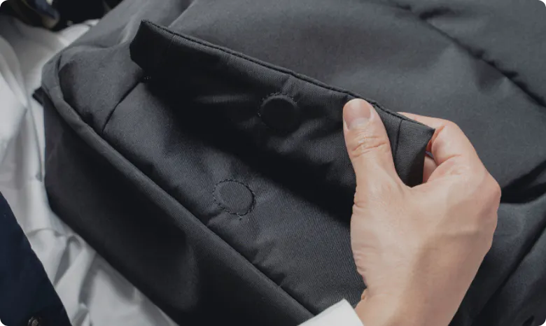 フロントポケットの開閉部分はマグネット式。ファスナーでの開閉に比べ、背負いながらの出し入れもスムースです。