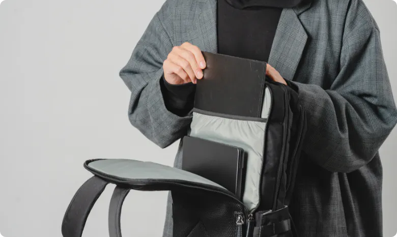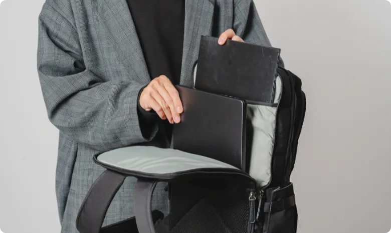 背面部分には、16インチまでのPCやiPadなどのビジネスアイテムが入るように設計されています。