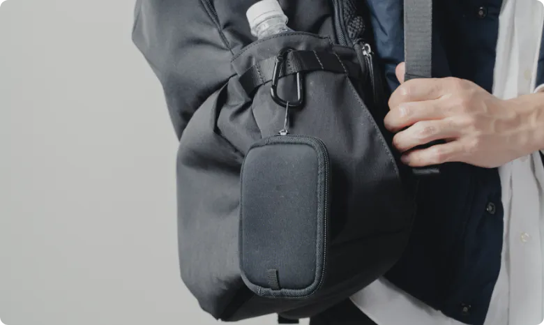とはいえオンラインでの商談は多く、ミーティングルームへの移動も多いはず。そんな打ち合わせの際に小物を持ち運びたい時、手ぶらでサクッと行動できる、便利なポーチです。