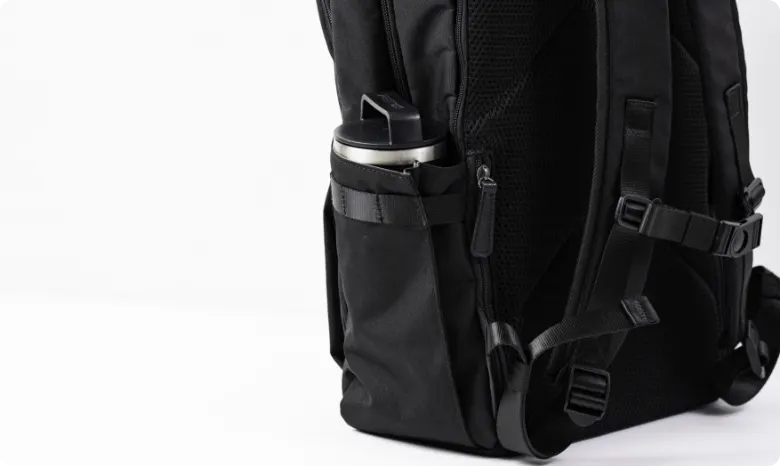 バッグの側面にはボトルポケットを搭載。水筒やペットボトル、折り畳み傘などの長いものの収納に。