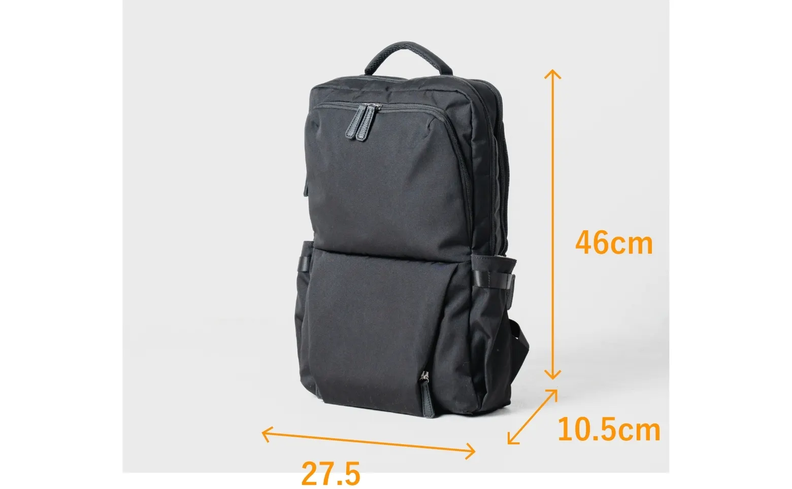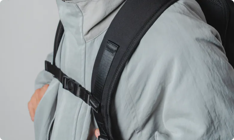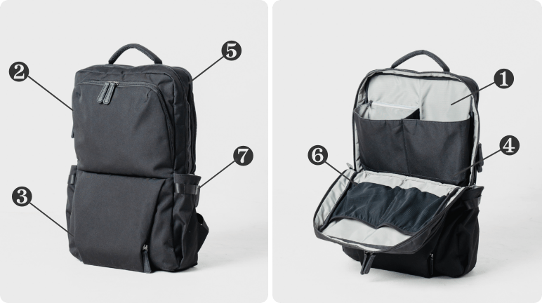 奥行きが2cmほど短くなりました。数字で見るとインパクトは薄いですが、見た目が大きく変わる結果に。バックパックの野暮ったさが軽減され、タウンユースでもスマートに。スーツにも合わせやすいデザインに生まれ変わりました。