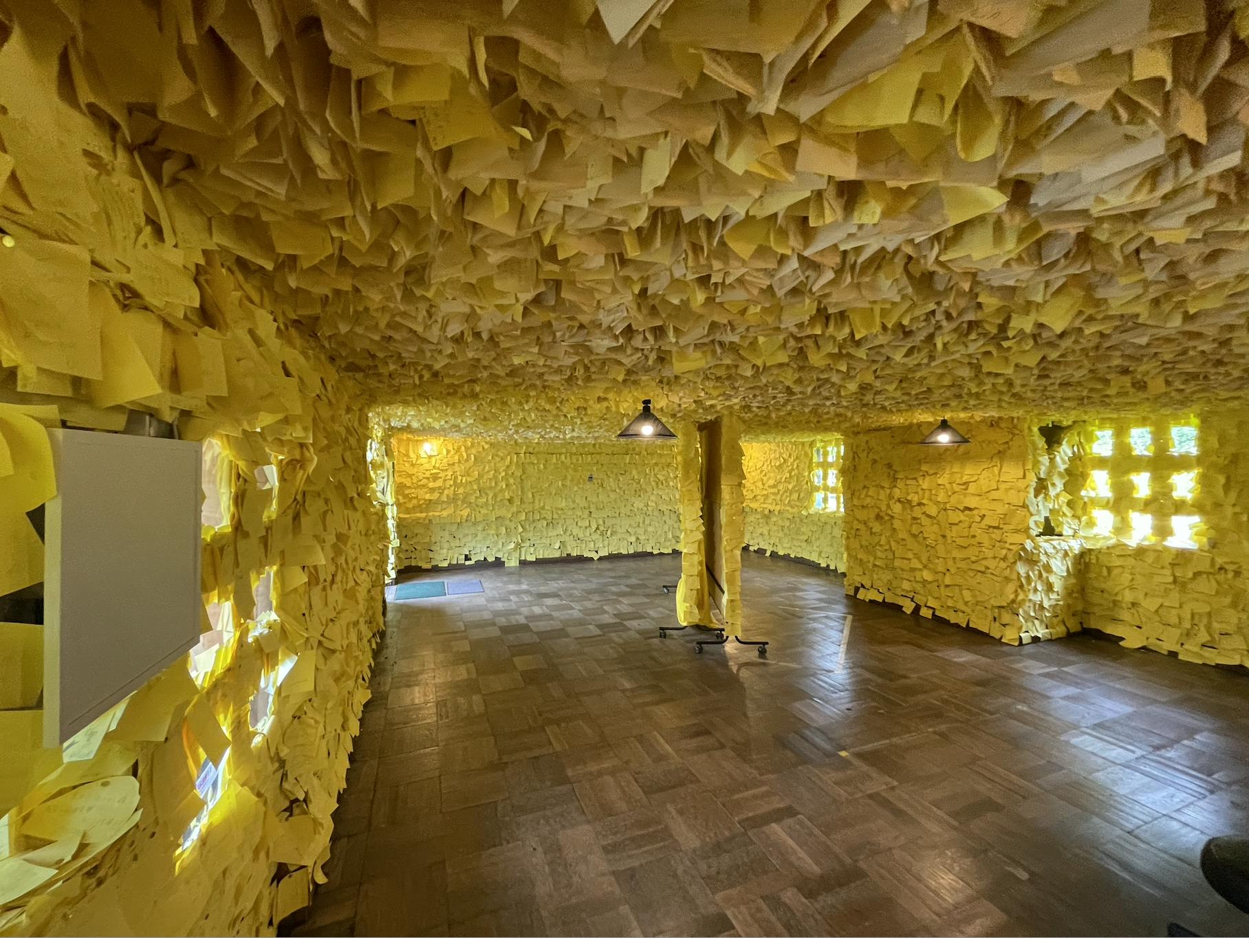炭鉱で栄えた夕張に根付く「一山一家」の文化を支えた五軒長屋の炭鉱住宅の内部には、映画で描かれた「幸福(しあわせ)」を写真や実際に使われた小道具で展示しているほか、来場者が大切な人へ宛てたメッセージを記した付箋で黄色く染め上げられている空間には「幸福(しあわせ)」への想いが積み重なっています。このほか、山田洋次監督が「幸福(しあわせ)」について語ったこの施設限定のインタビュー映像も上映されています。