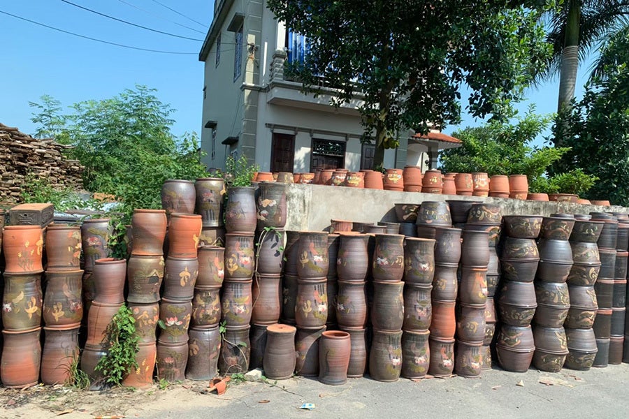 豊かな自然と良質な粘土、陶芸文化のある土地を巡り、ようやくこの地に辿り着きました。フーラン村の陶器作りは昔ながらの技法で、赤い陶土を使い大型の水瓶などを製作しており、村人の約5分1が作陶に従事しています。しかし、村民の年収はベトナム北部陶芸地域の中では低いそうです。