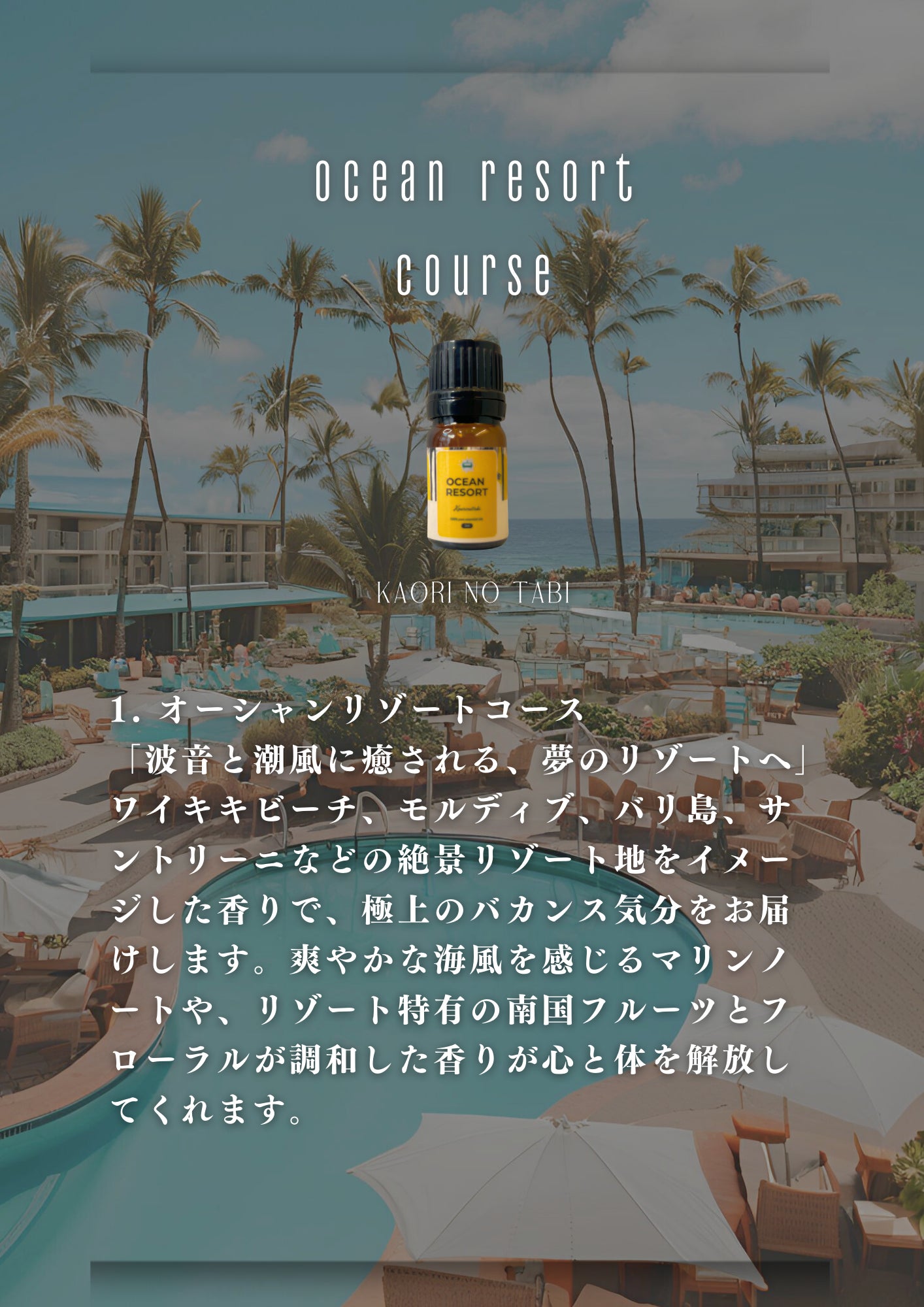 リゾート地を感じれる香りの旅のコース紹介