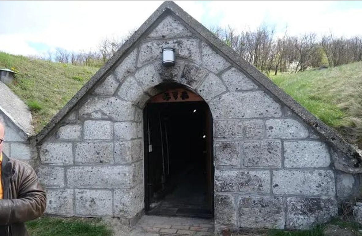 写真は、現・マークワインズのセラー入り口。右側の男性がワイナリーまで車で案内してくれたオーナであり、取引相手のKiss Szilard(キシュ・シラルド)さんです。※ハンガリーの姓名は日本と同じで名字が先にきます。