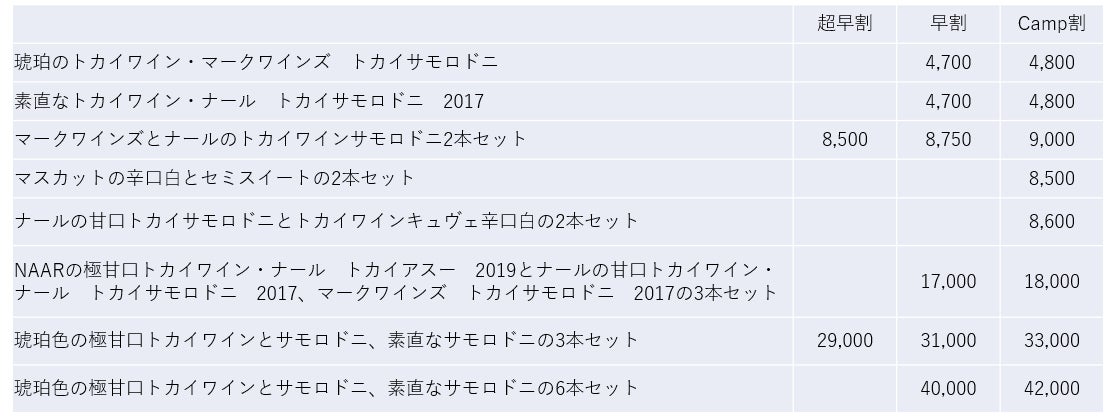 1本もののリターンはサモロドニタイプのトカイワイン2種類だけになっています。辛口白とセミスイートは2本セットのみです。