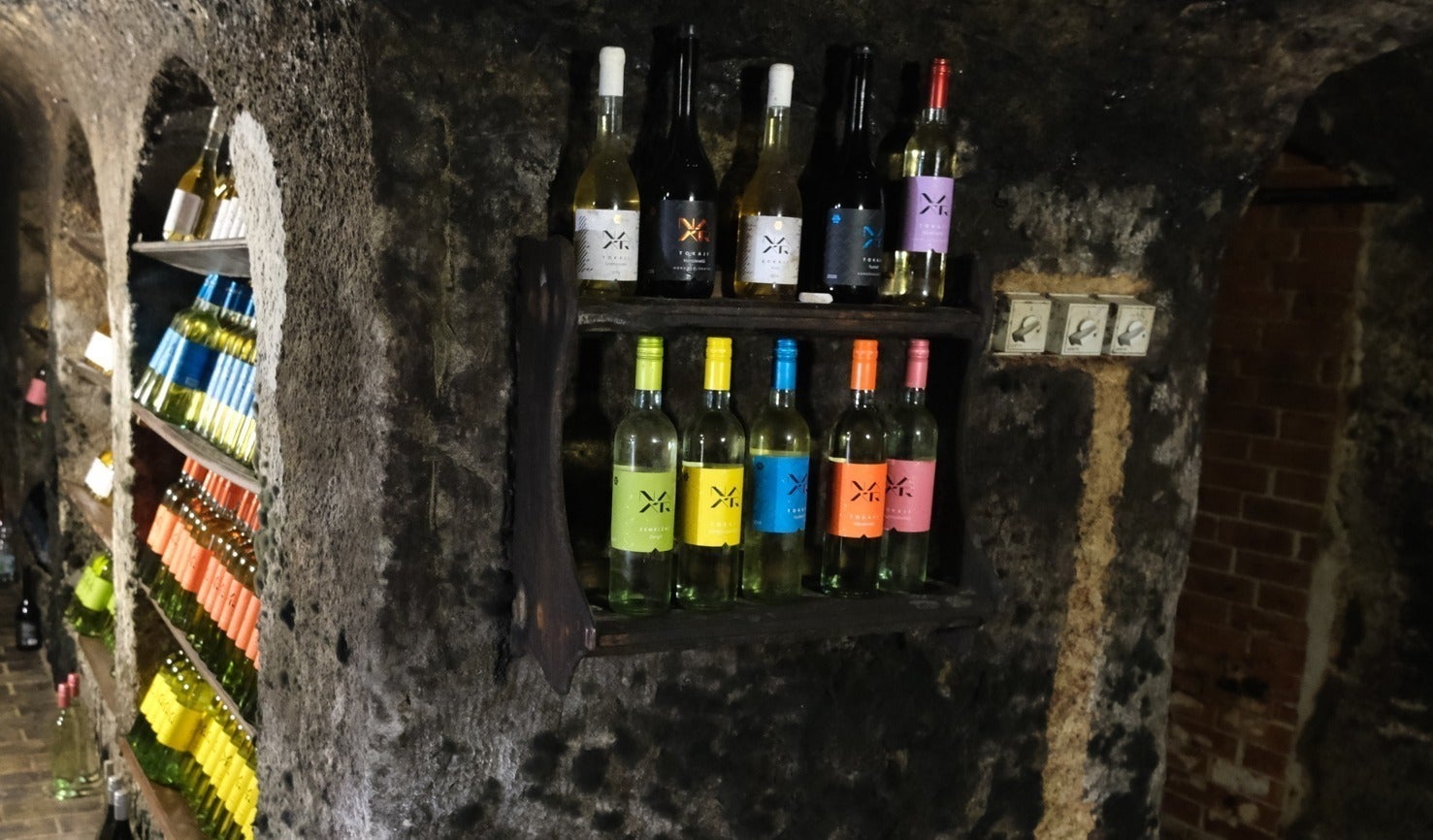 そして、左から4番目がマスカットの辛口白ワイン「ナール トカイ シャルガムシュコタイ 2023」、その右隣がマスカットのセミスイート「ナール トカイ シャルガムシュコタイ 2023」、右端がトカイワインに使われる主要3種のブドウを使った辛口白ワイン「ナール ピクニック キュヴェ 2023」です。