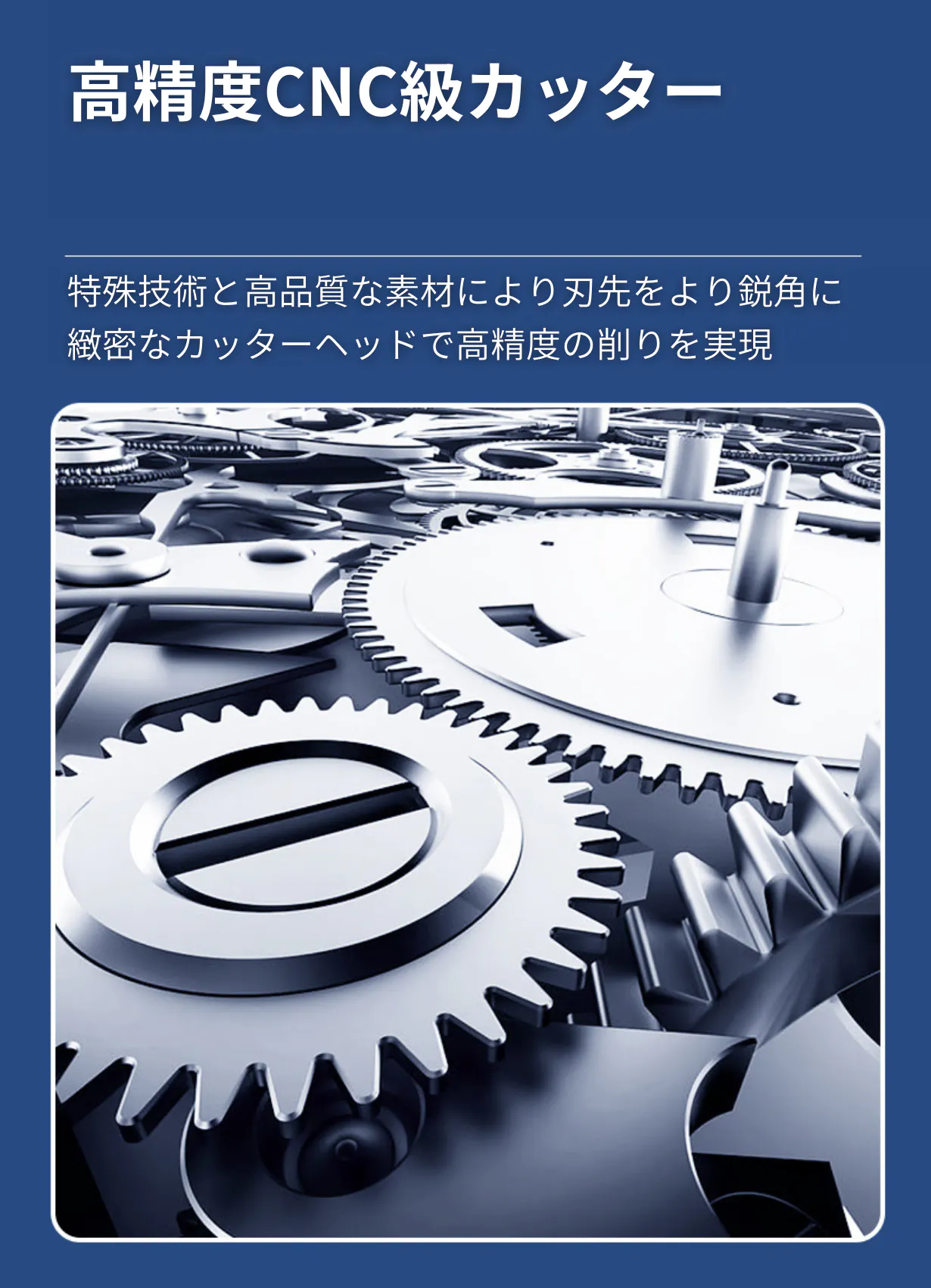 CNC級の精密な合金カッター採用で、より高精度でキレイな削りを実現しました。