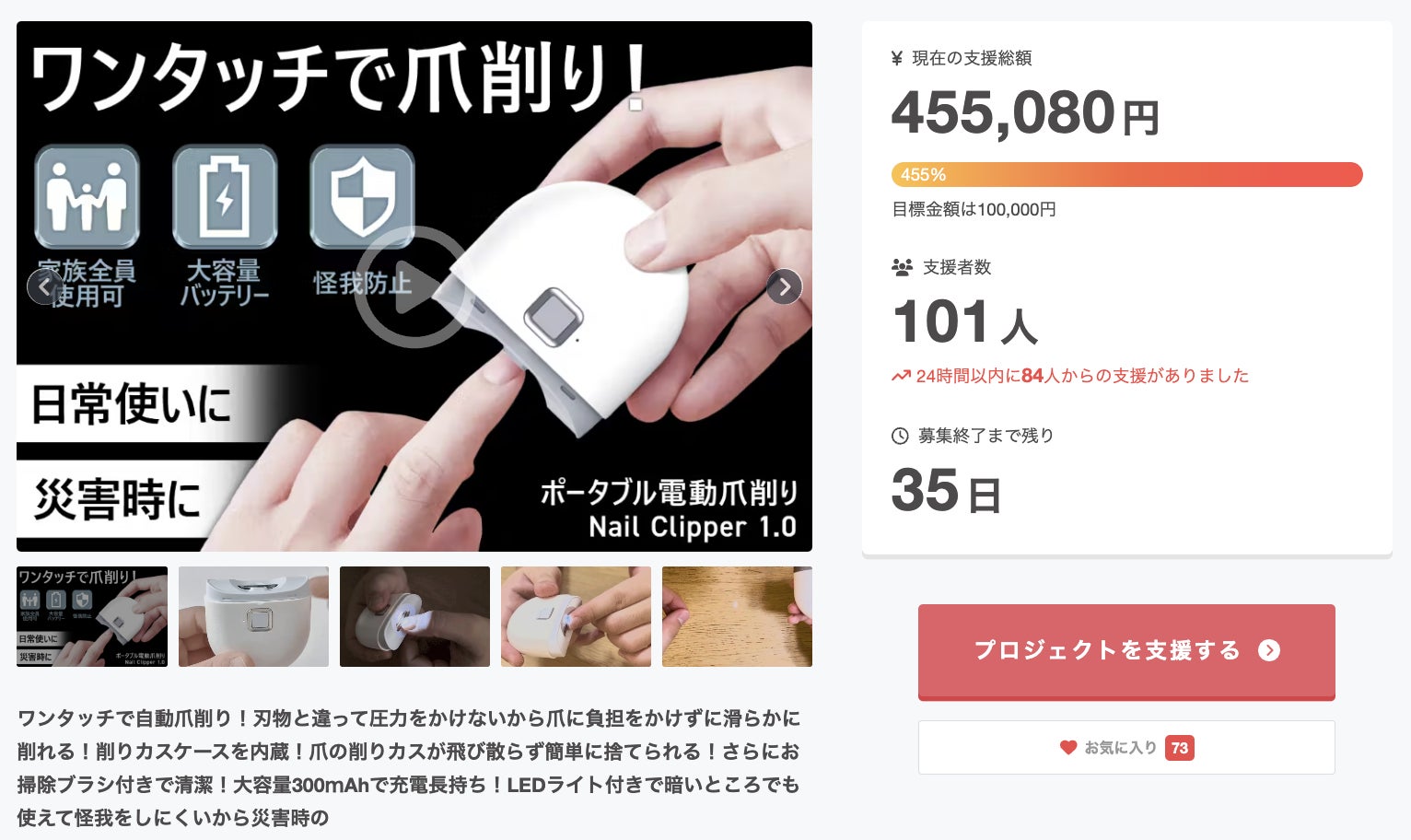 この度は「ワンタッチで爪切り&爪研ぎ!これ1台で家族全員使える超小型電動爪削り」に支援頂き誠にありがとうございます!