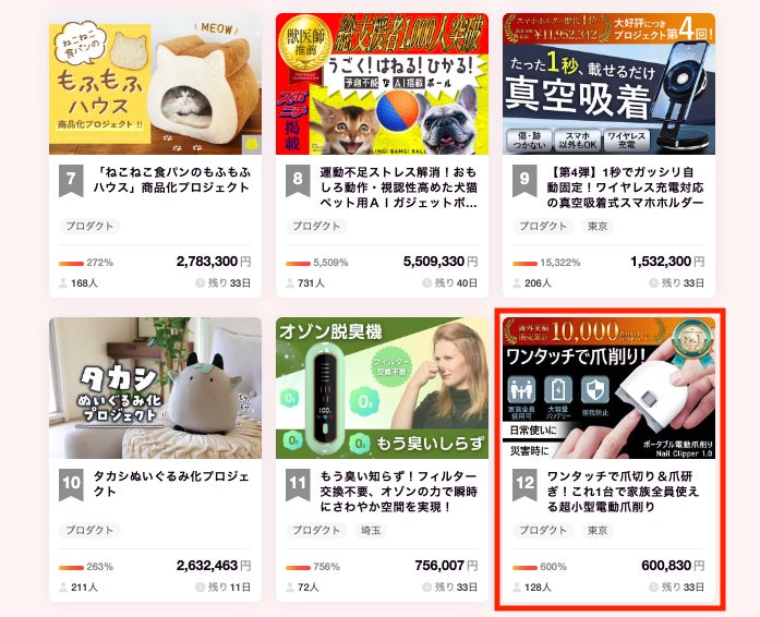 また本日のCAMPFIRE人気ランキング プロダクト部門で 12 位!