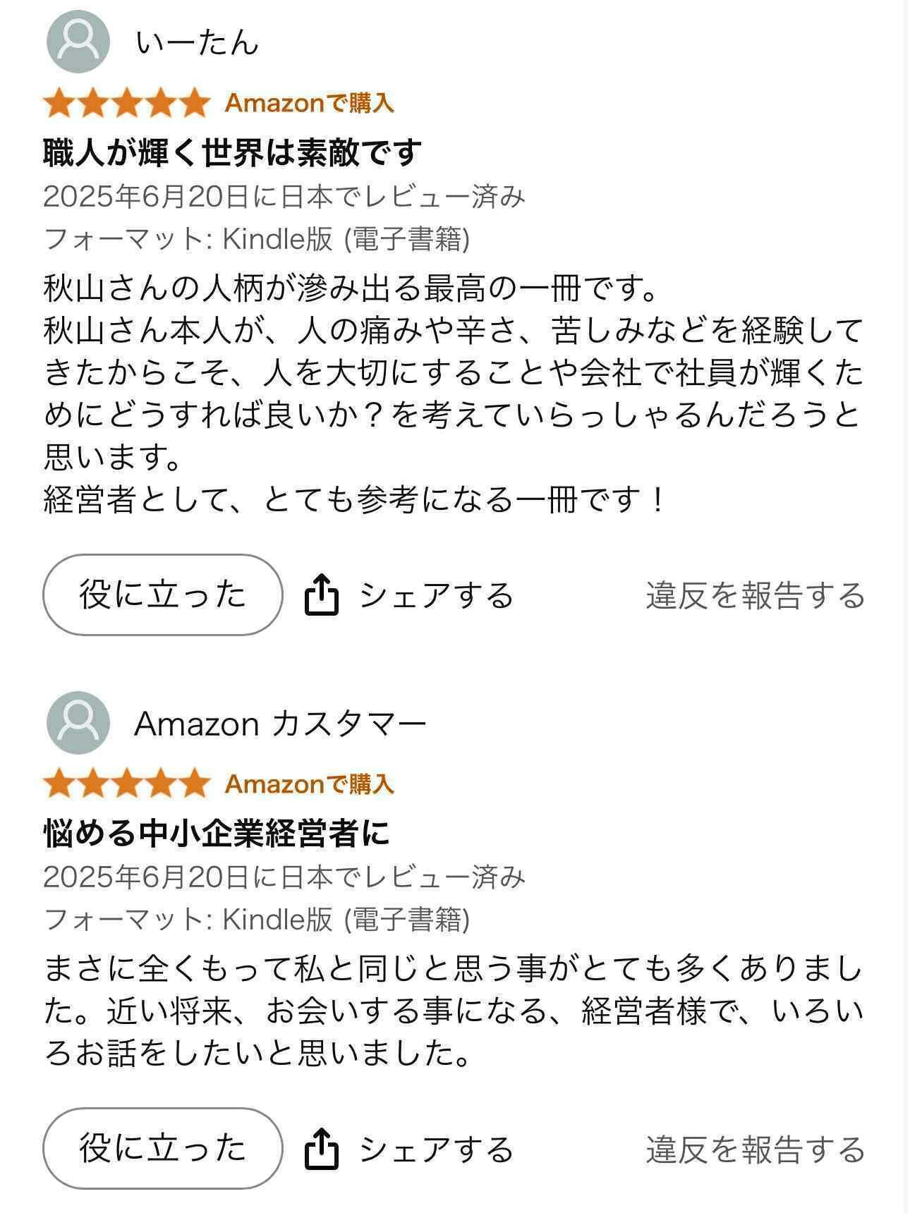 2025/06/24 10:56【たくさんの応援ありがとうございました】『電気工事で新しい世界をひらく』昨日で無料キャンペーンが終了しました。感想もたくさん届いて、本当にうれしかったです。「久しぶりに心が震える本だった」「若者たちに、この本は絶対響く」そんな声に、勇気をもらいました。ぼくは、現場仕事に人生を救われた一人です。その経験を誰かの一歩に変えていきたい。10万人の若者に、“現場仕事で新しい世界をひらく”応援をこれからも続けていきます。この場を借りて、感謝を伝えさせてください。皆様、心から、ありがとうございます。日本の未来を子供たちの未来を明るくしていきましょう!秋山剛 もっと見る