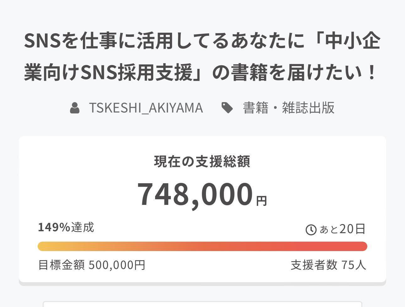 人生はじめてのクラウドファンディング あと20日。
