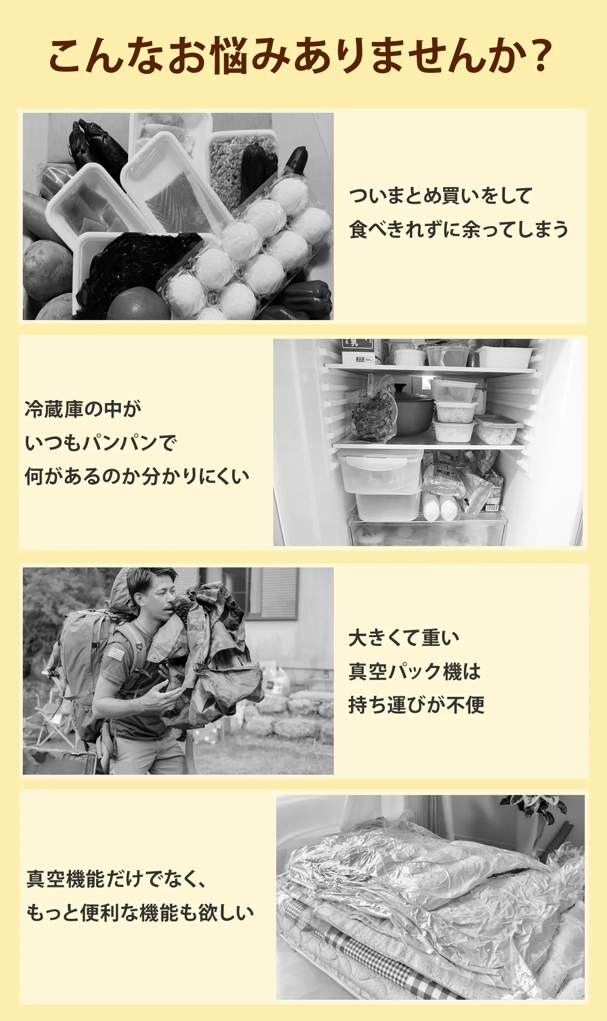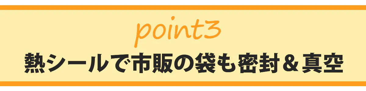また、真空パックや熱シールで袋を密封することで、食品の臭い漏れを防ぎ、保管や持ち運びの際に衛生的に保てます。