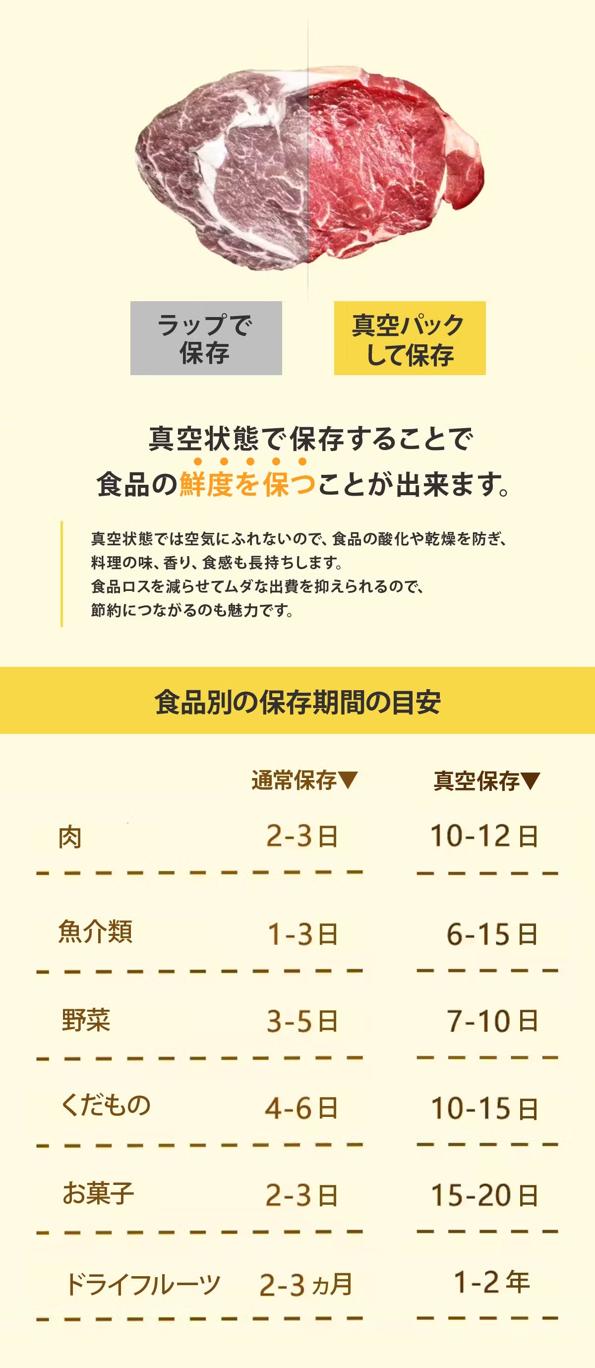 真空保存で食品を長持ちさせる