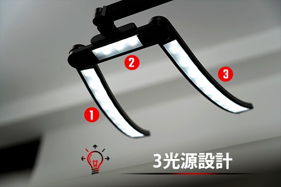 デスクライト「HILIGHT」は、3光源設計を採用しており、常に影を消して均一な照明を提供します。