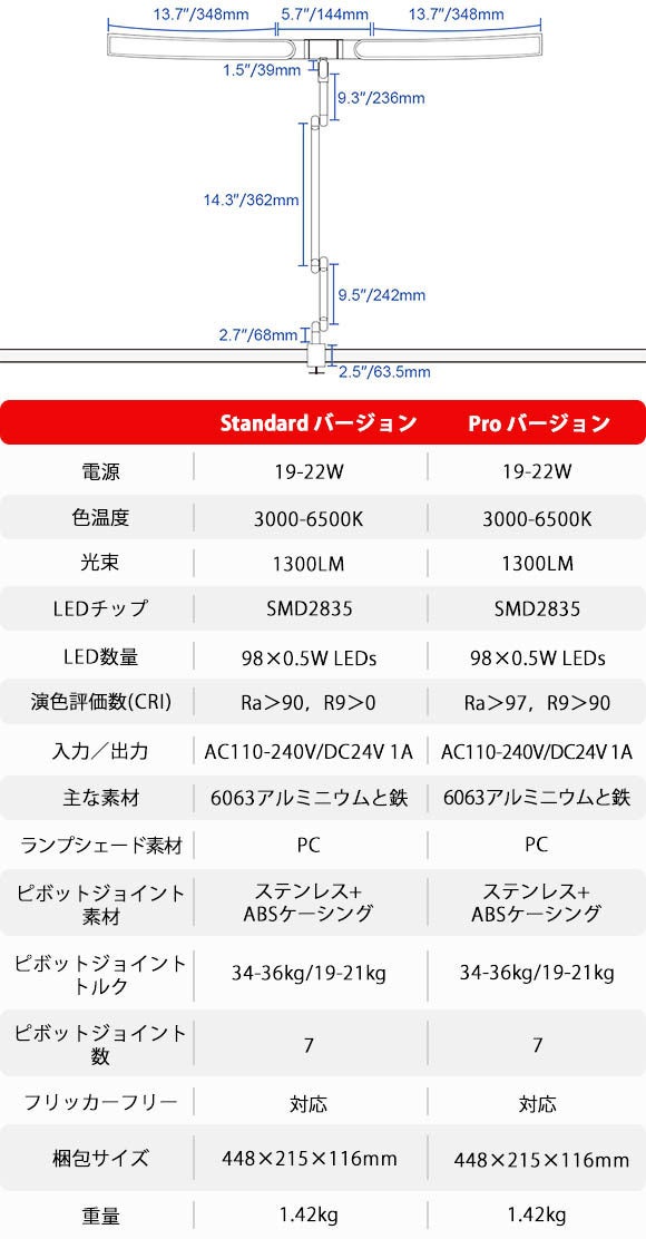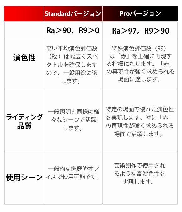・Standard(Ra>97,R9>90)とPro(Ra>97,R9>90)、2バージョンお選びいただけます!