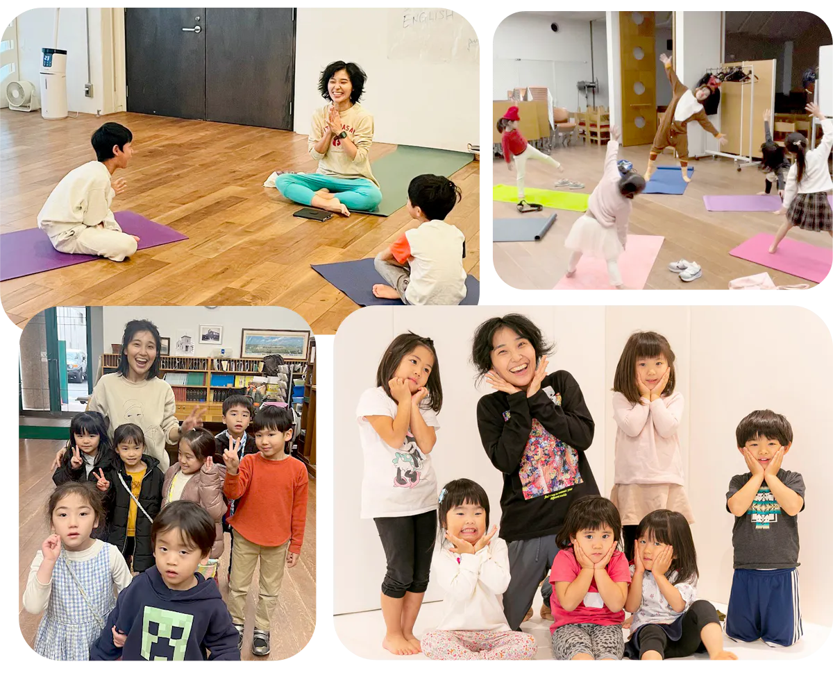 キッズヨガのクラスではヨガポーズ後の感想を共有し、子供たちとの言葉のやりとりを大切にします。この点はロンドンで学んだ、個々の身体表現を言葉を通して理解し、一緒に動きの意味を深めていく共同作業(collaboration)に特徴が似ています。