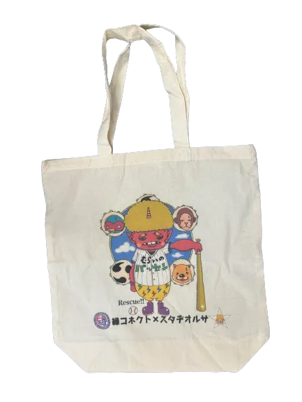 - バッティングセンターオリジナルキャラクターの「鬼村球太郎」を印刷したオリジナルトートバッグをご用意いたしました。