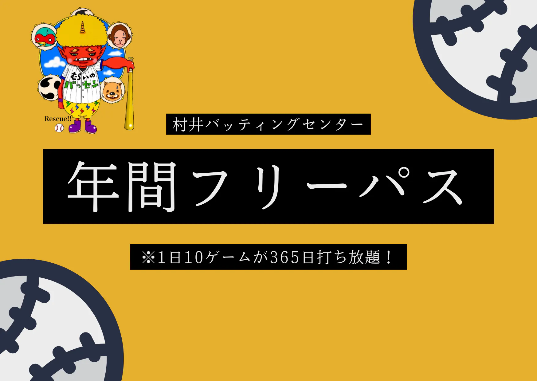 - 1年間好きなタイミングで好きなだけ村井のバッセンを楽しんでいただける年間フリーパスをご用意いたしました。