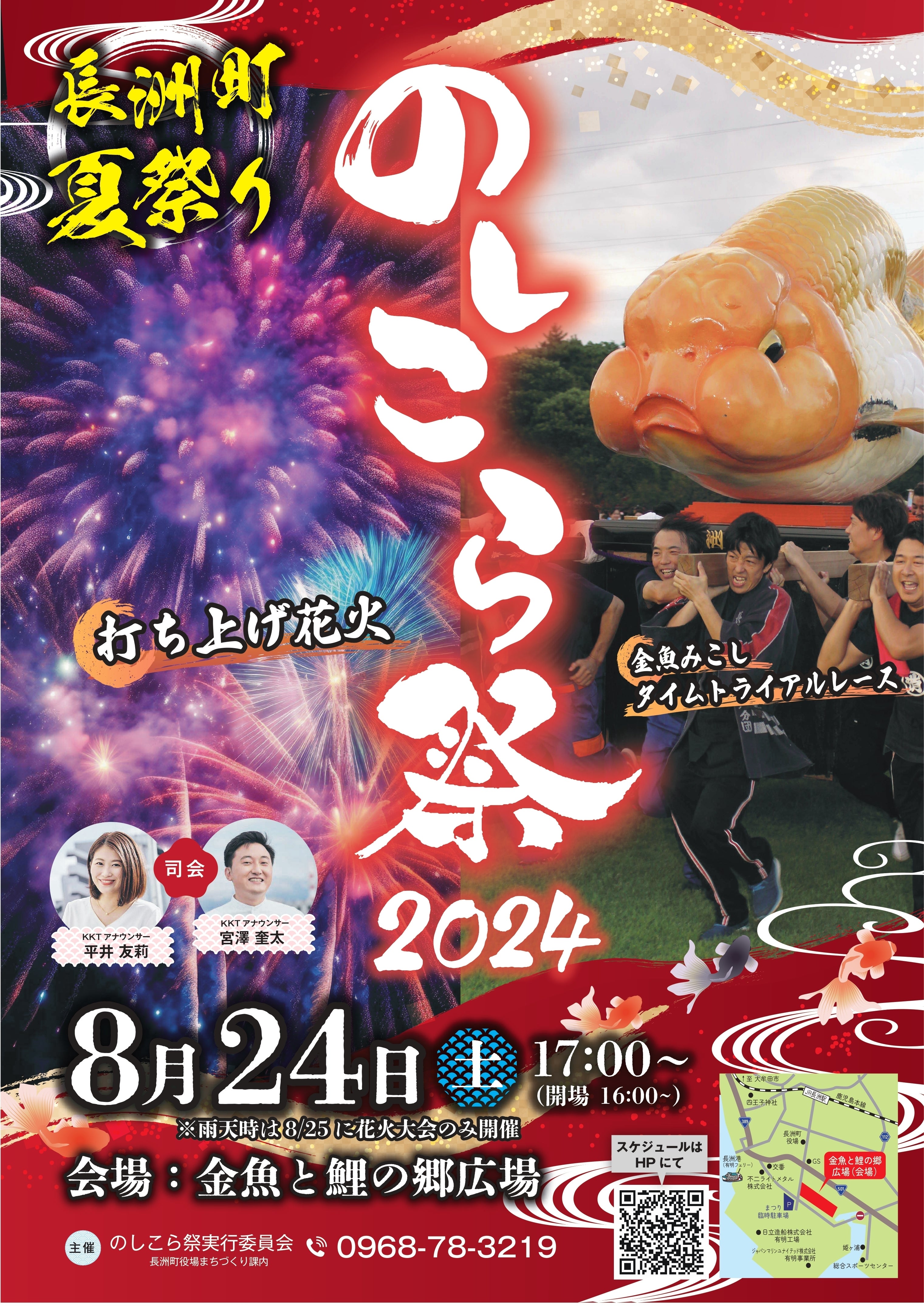 平成30年の開催以降、荒天や感染症の影響により開催ができず、令和5年に5年ぶりの開催となった「のしこら祭」は、地元企業や関係団体のご協力により開催する事ができ、多くの来場者に楽しんでいただくことができました。しかし、開催までの道のりは険しく、5年前と変わらず応援していただける皆さんがいるにも関わらず、物価高騰や安全な会場運営のための警備や設備確保のため、5年前と同じことをしようとしてもできない現実がありました。そんな中、地元の子供たちの中には「長洲町には夏祭りがない」と思っている子供たちがいるという話しが聞こえてきました。
