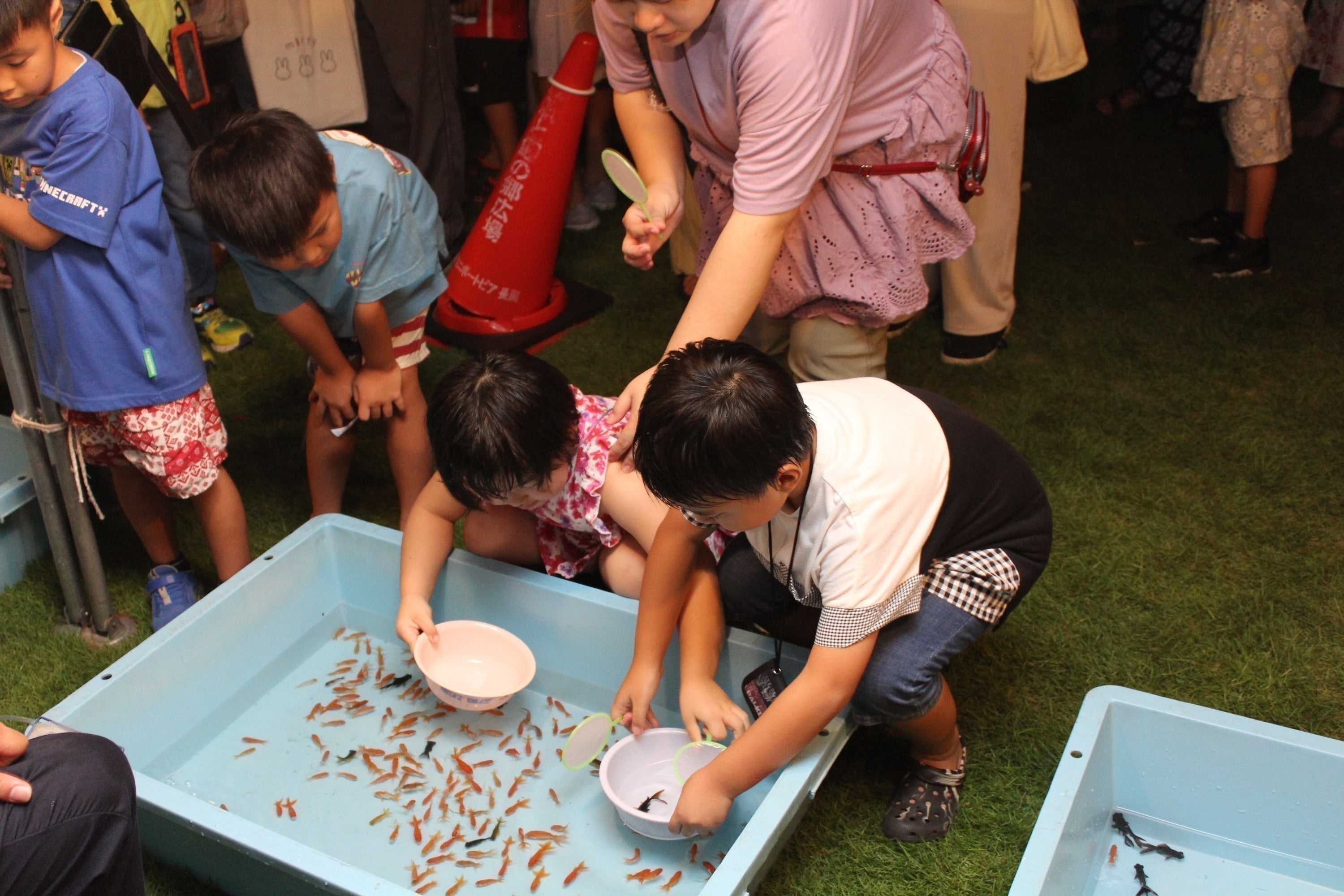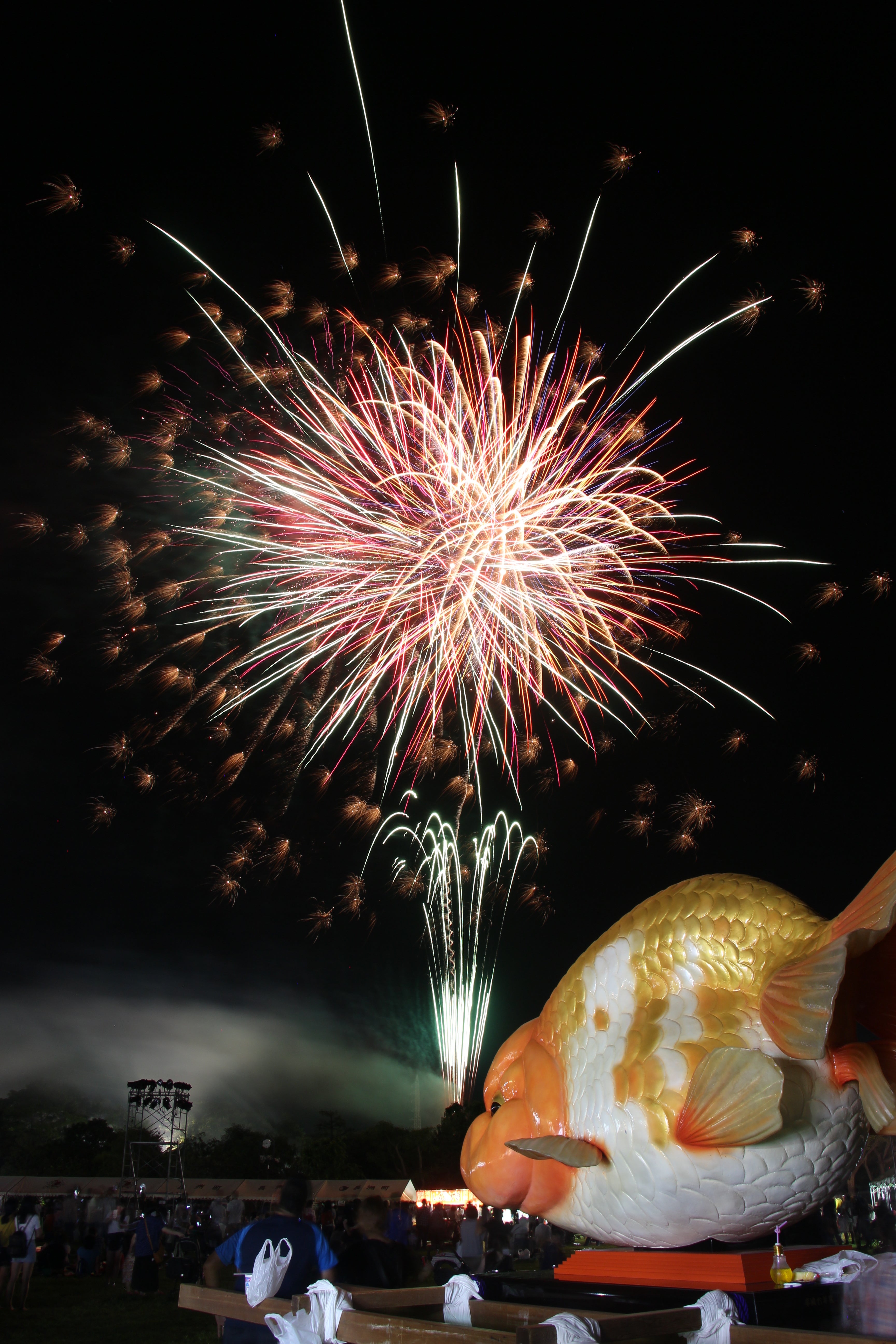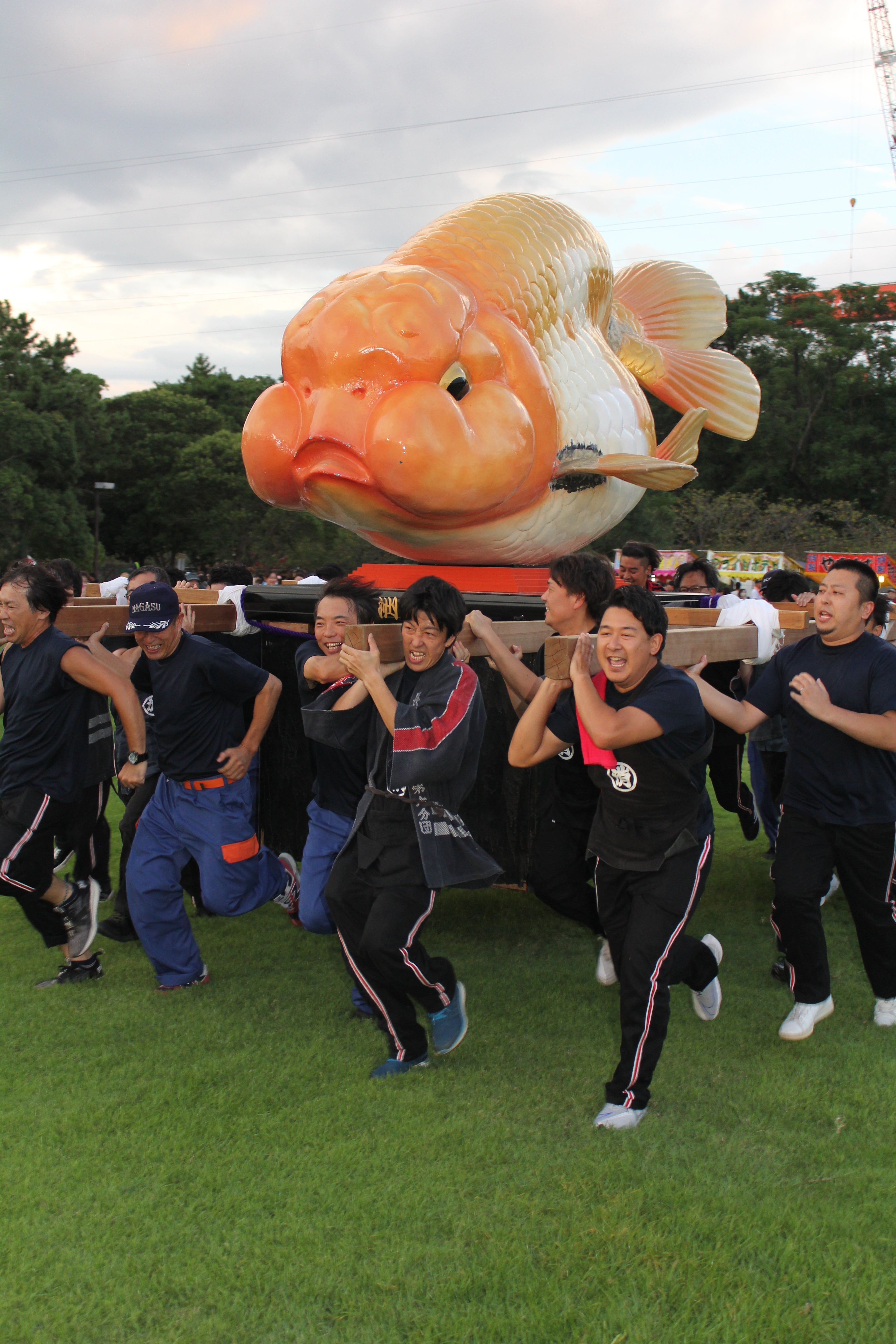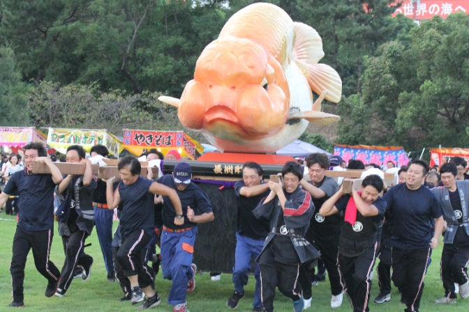 このお祭りの見どころは、長洲町の特産品である「金魚」を模した約300Kgのみこしを担いで80mを走り抜けてタイムを競う「金魚みこしタイムレース」、たくさんの人が楽しんで長洲の金魚に親しむ「金魚すくい」、そして圧巻の迫力の「花火大会」です!