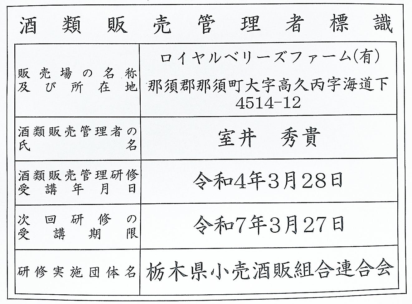 果実酒製造免許取得し、令和4年3月に酒類販売管理研修を受講