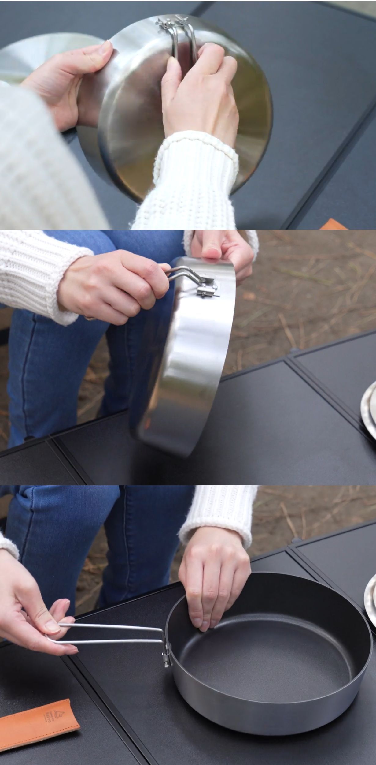 ハンドルは折り畳み式なので、キャンプはもちろん、ご家庭での収納にも便利。