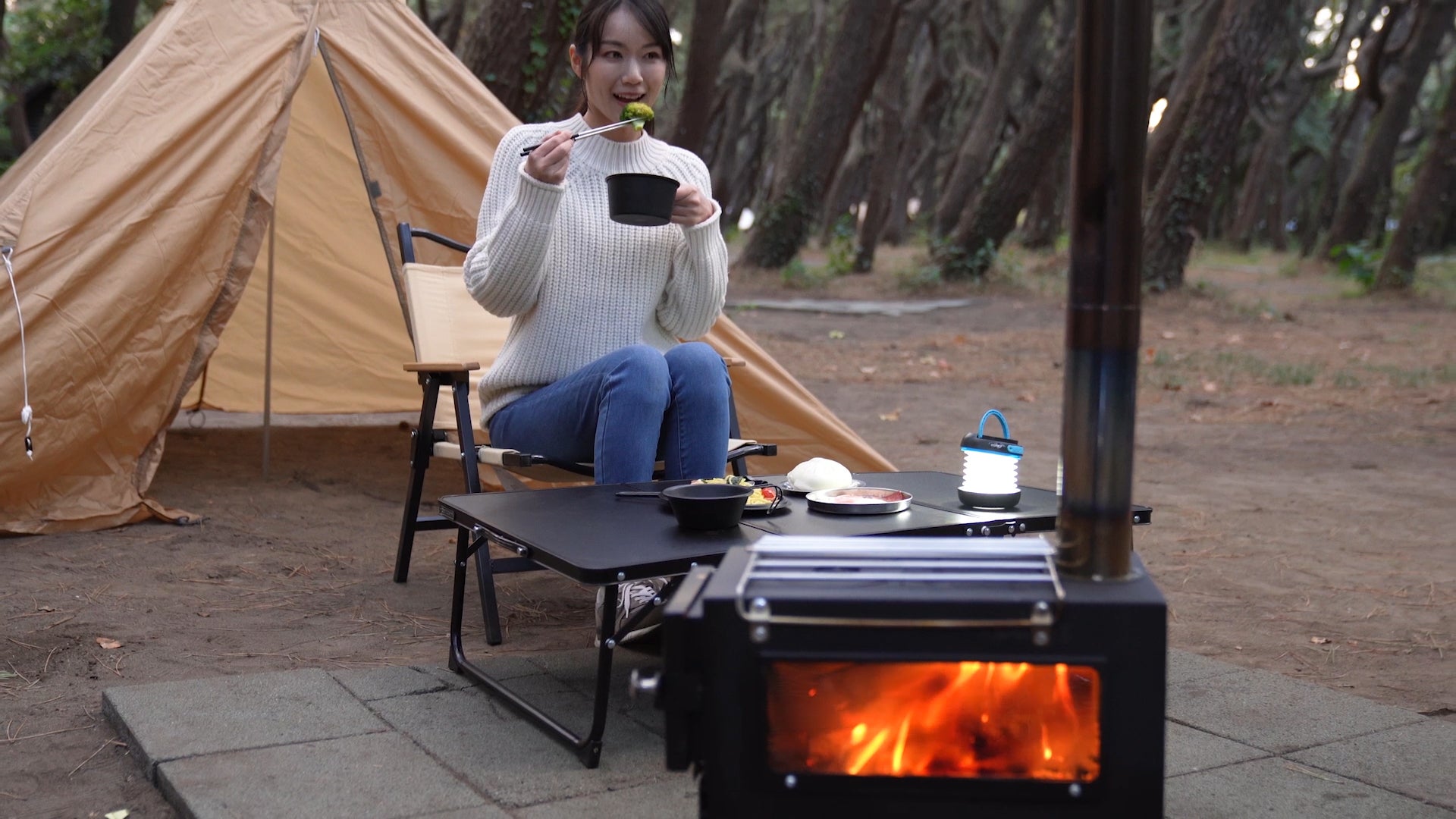 キャンプで