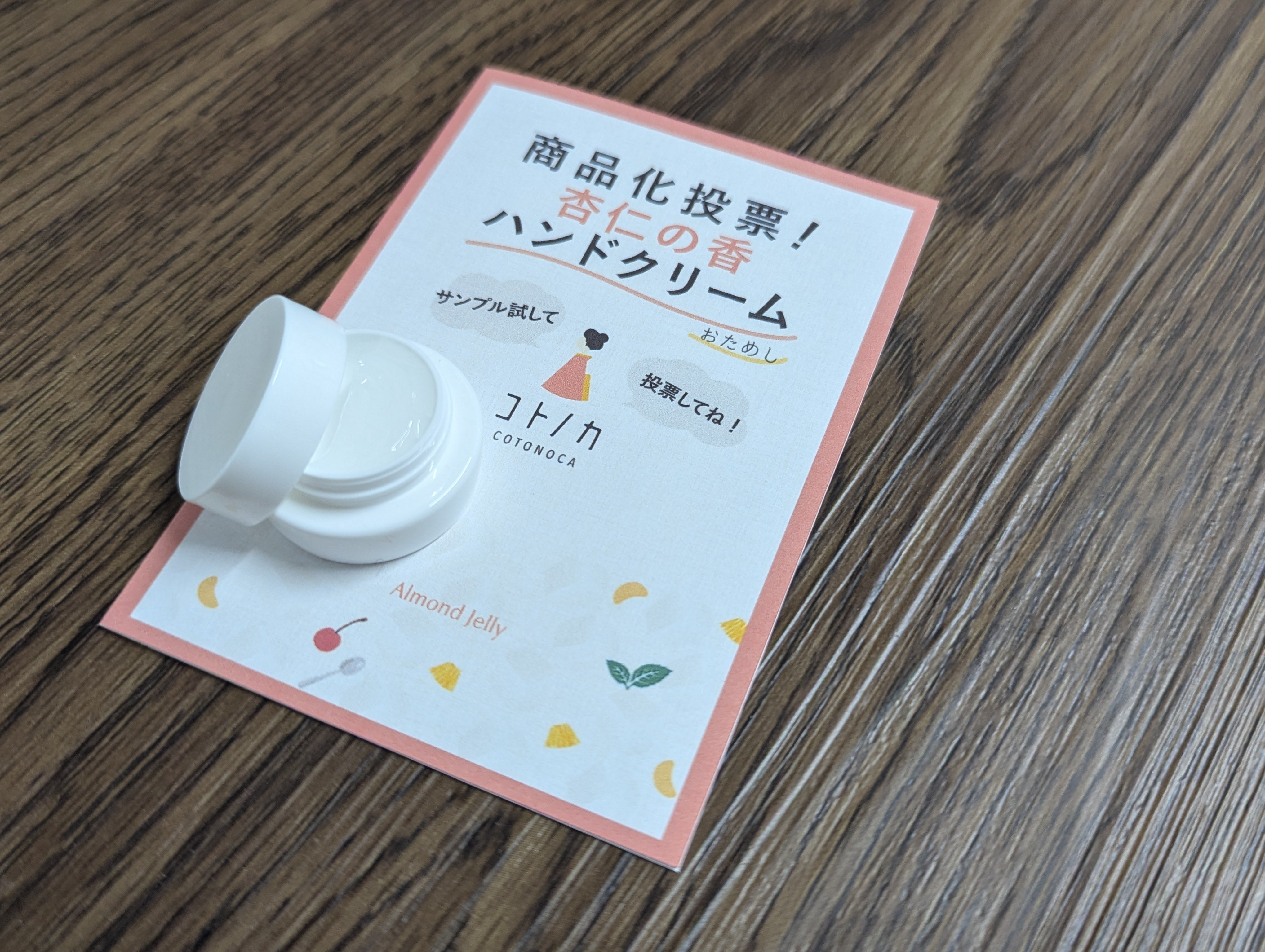 こんにちは!コトノカです!!本プロジェクトも残り1週間を切りました!ご支援者様も100名目前でとても嬉しく思っております!タイトルにも書いたのですが、もしよろしければ皆様にお願いしたいことがございます!それは「~ネイル&ハンドクリーム 杏仁の香~ 商品化投票」です!!!コトノカの中でも大人気の「杏仁シリーズ」現在はオードトワレ、ピローミスト、フレグランスオイルの3種展開です。今までで一番といっても過言ではないくらいご要望の多かった「ネイル&ハンドクリーム 杏仁の香」。商品化するか否か、本当に弊社スタッフ一同悩んでおります。そこで、皆様に審査して頂こうという魂胆です!!!!ご支援くださった皆様にネイル&ハンドクリームのサンプルをリターン発送時に同封いたしますので、商品化は「あり」か「なし」か、ご投票いただきたいのです!!「あり」が多かった場合、商品化!!「なし」が多かった場合、お蔵入りです!!!香り自体はとてもとてもめっちゃくちゃ良いのですが、持続時間に難点がございまして…。そのあたりもお試しいただいて、商品化は「あり」か「なし」かご投票いただければ嬉しいです!!詳細を記載したリーフレットと一緒をリターンと一緒にお送りいたしますので、そちらから簡単に投票できます!もちろん、こちらは誰が投票したかわからないようになっており、完全匿名投票です!設問はシンプルで、「あり」か「なし」のボタンとなんでも書ける備考欄のみです!リーフレットには、公式サイトでお使いいただけるクーポンコードもついておりますので、良ければそちらもご活用くださいませ!リターンの発送準備もいよいよ大詰め!残り1週間!よろしくお願い致します!!