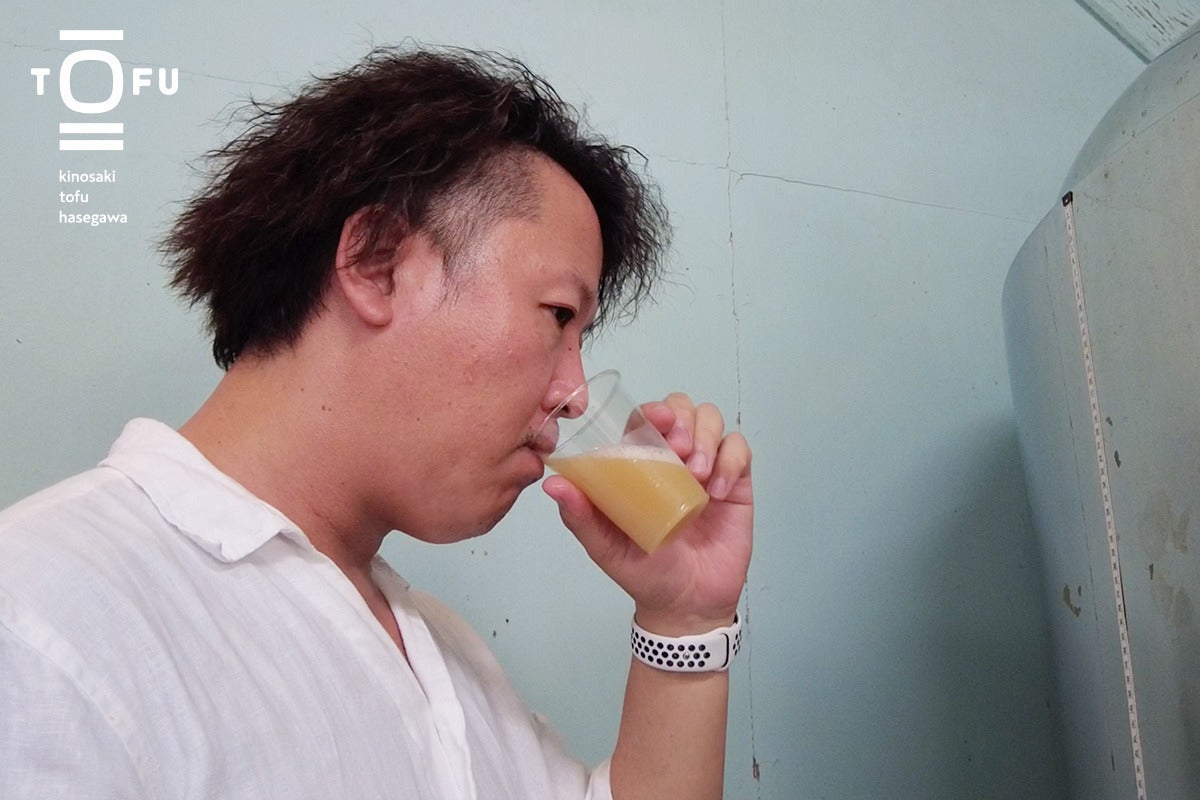 そんな中、商工会の青年部に参加し、出石城山ビールの奥村さんと出会い、「豆腐でビールが作れるのではないか」というアイディアが生まれ、日本初の豆腐ビール作りへの挑戦が始まりました。