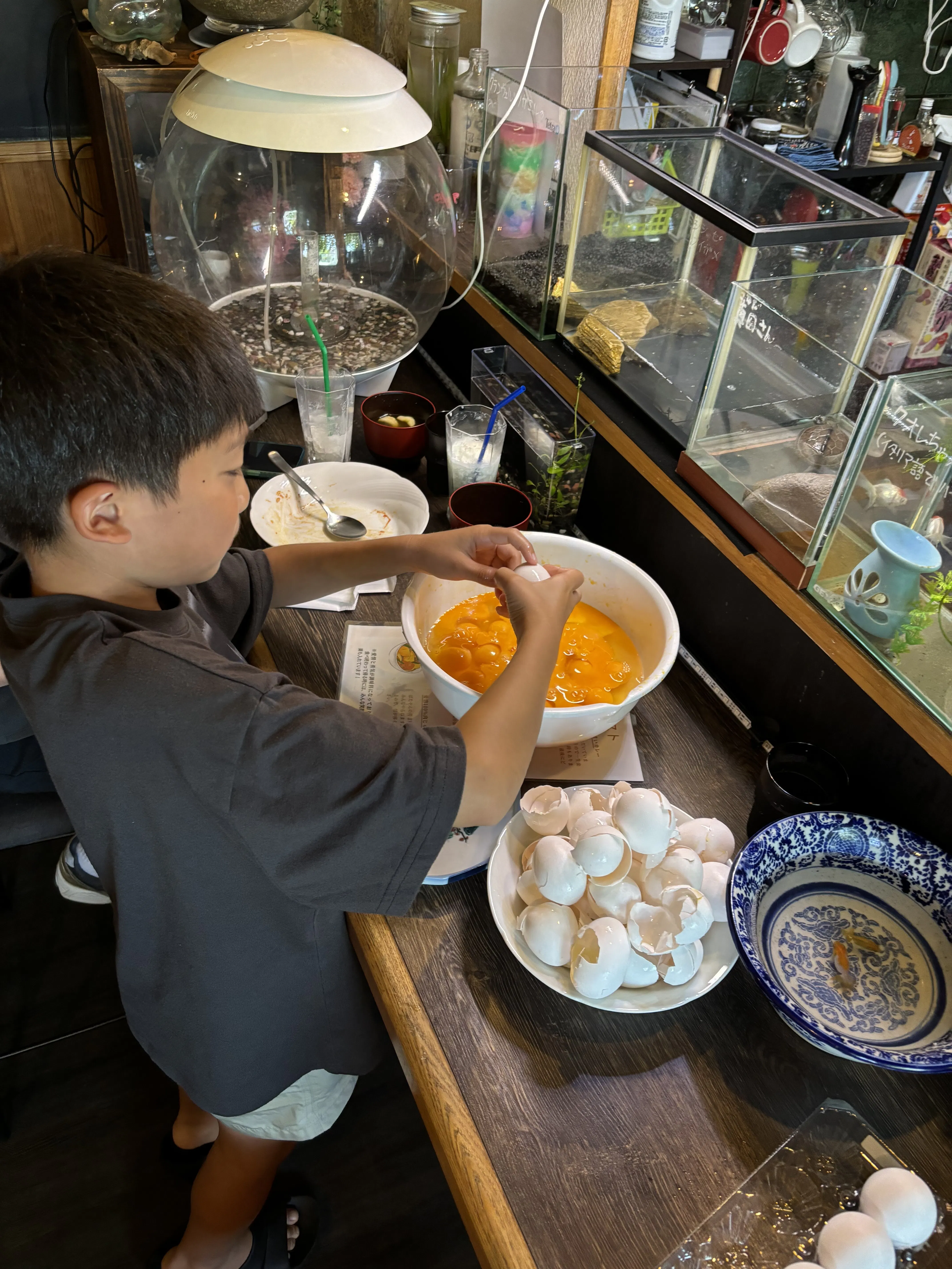 みんなで金魚の絵を書いて壁に貼ろうという事で、お客さんみんなに書いてもらいました。人それぞれ違うのですごい面白いです!