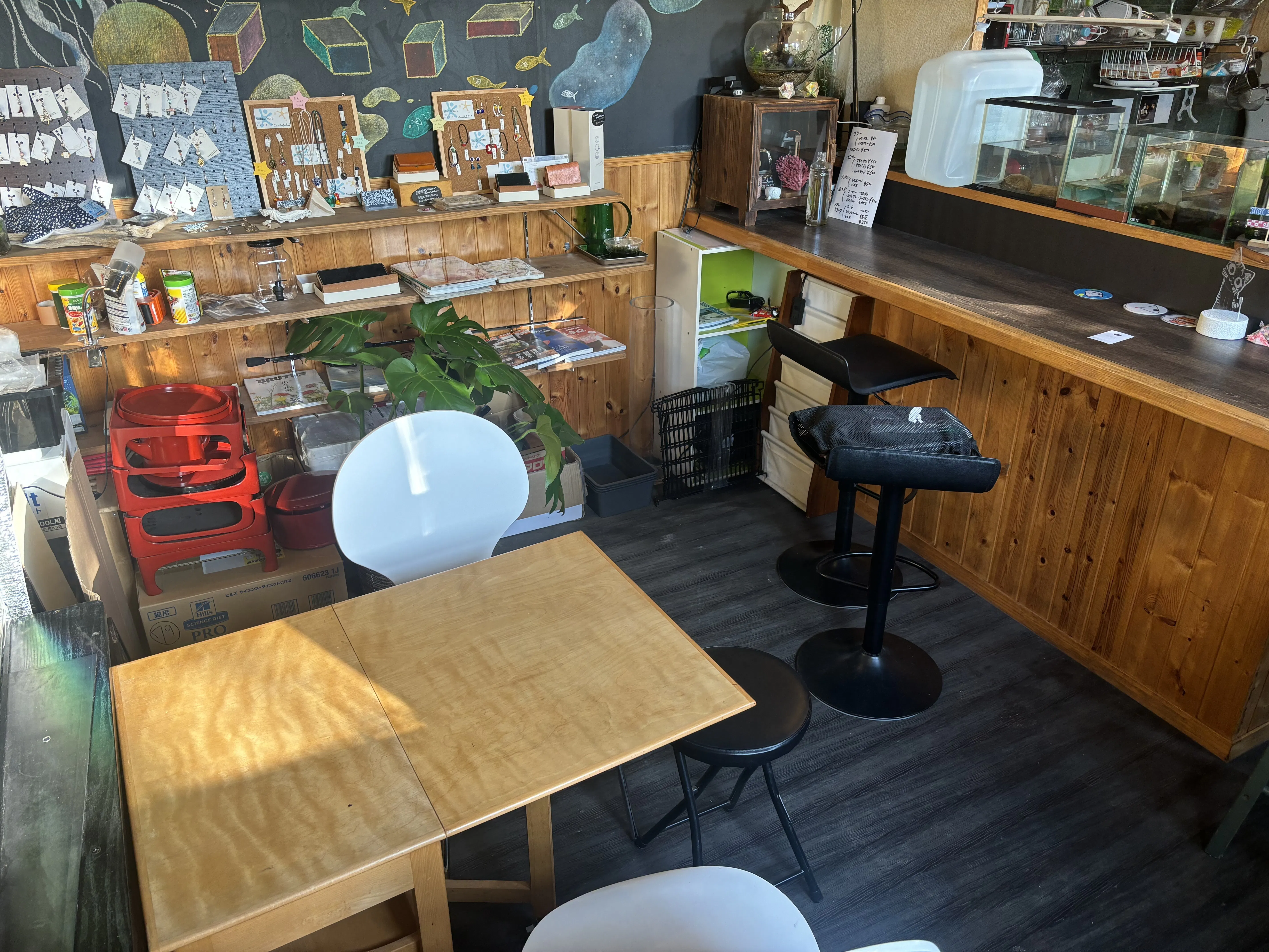 (ゆっくり座れる居間、カウンターもあるので親子で来ても大丈夫です!)