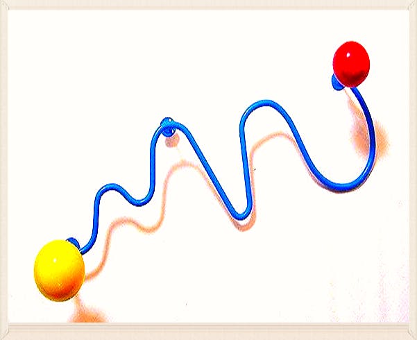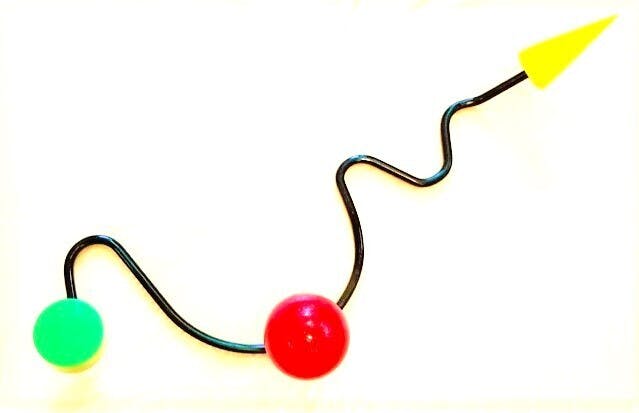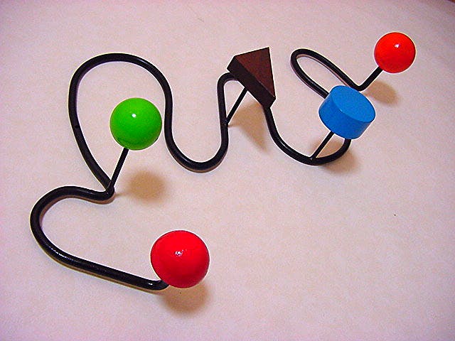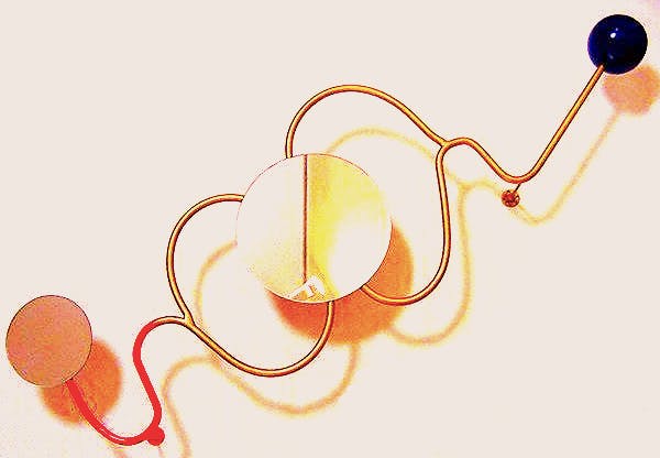 タイトル/パーソン:木製幾何形体4点・スチールパイプで構築された