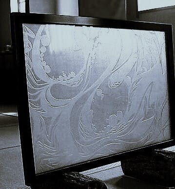 タイトル:MIZU / 原画の切り絵を元にガラスの表面を