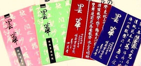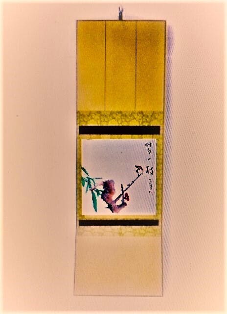 練習用の書道教本・手描き墨絵・墨彩画のうちわ・色紙掛け付き墨絵や墨彩付き色紙、他インテリア創品:タワシ製インテリアグリーンや江戸小紋柄のウオールハンガー:幾何形体とスチールパイプ素材及び和柄背面のパイプチェアーそして平面仏像の墨絵等を準備しております。