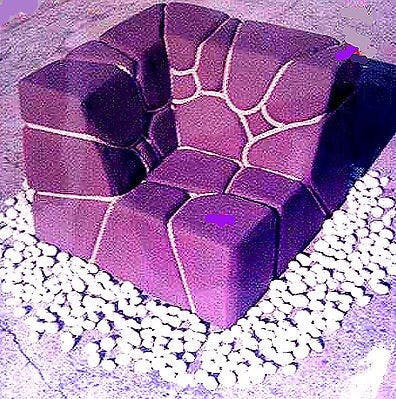 素材:硬質ウレタン・布・マニラロープで石垣イメージソファーを構築