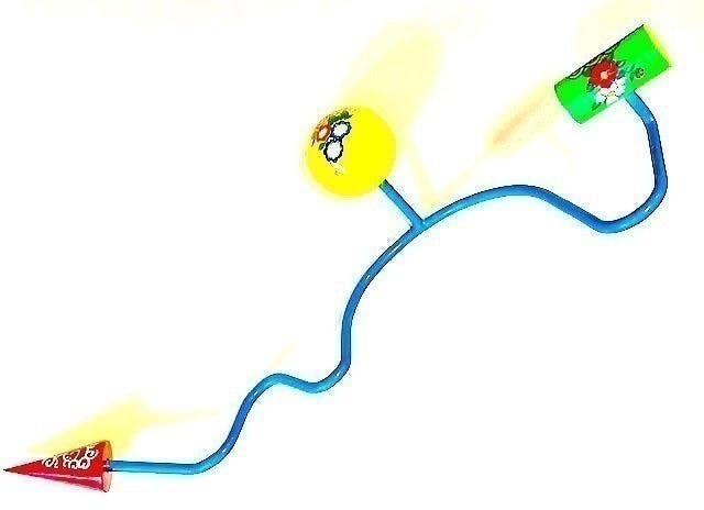 ウオールハンガー:スチールパイプと木製幾何形体3点で構築。