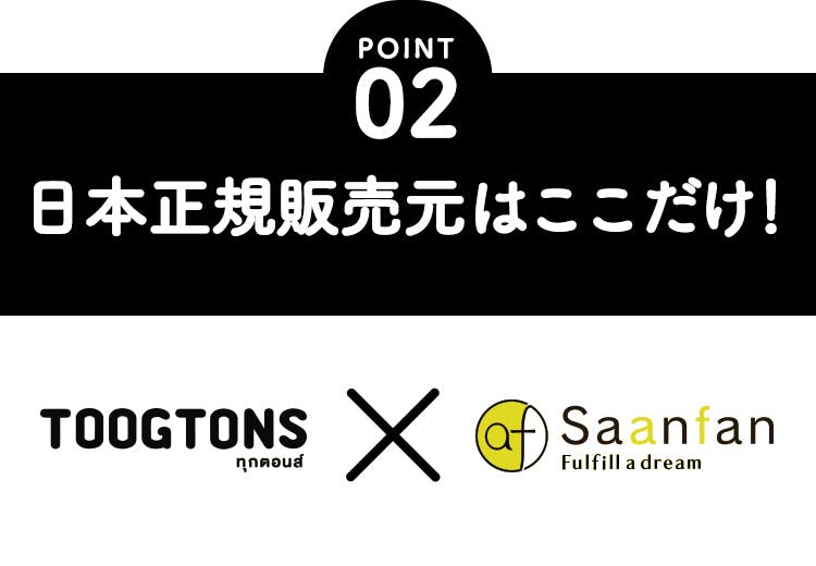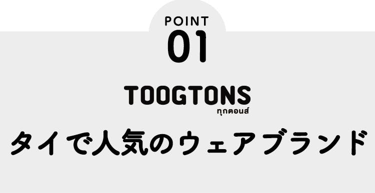 TOOGTONSは肌に当たる柔らかさを重視したタイのリラクゼーションウェアブランドです。柔らかく着心地の良い上質な衣類を通じて人々のQOL向上を目指しています。タイ国内からの評価も高く、人気商品となっています。