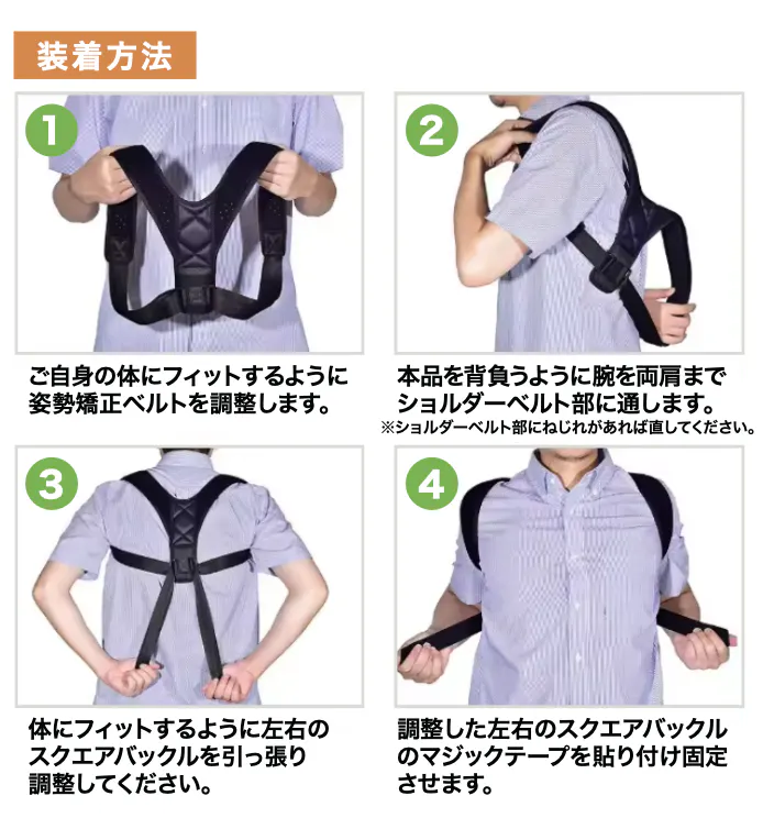 A.Vidup(ヴァイダップ) 姿勢サポートベルトは、引っ張り感や締め付けのない着用感が特徴です。肩にふわっと乗っているような装着感で正しく着用できています。ご安心ください。