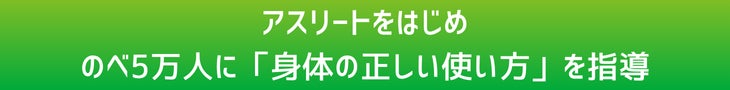 相互循環セッション®という独自のメソッドを開発し、トップアスリートから高齢者まで、幅広い年齢層に対してその効果を証明し、17年以上に渡り、のべ5万人を指導・施術してきました。クライアントはテニス、車椅子テニス、バレーボール、バスケットボール、ウエイトリフティング、パワーリフティングの日本代表選手をはじめ、プロ野球、競輪、サッカーのプロ選手、ミュージシャンやパフォーマー、さらには動けない高齢者、難病患者など多岐にわたります。