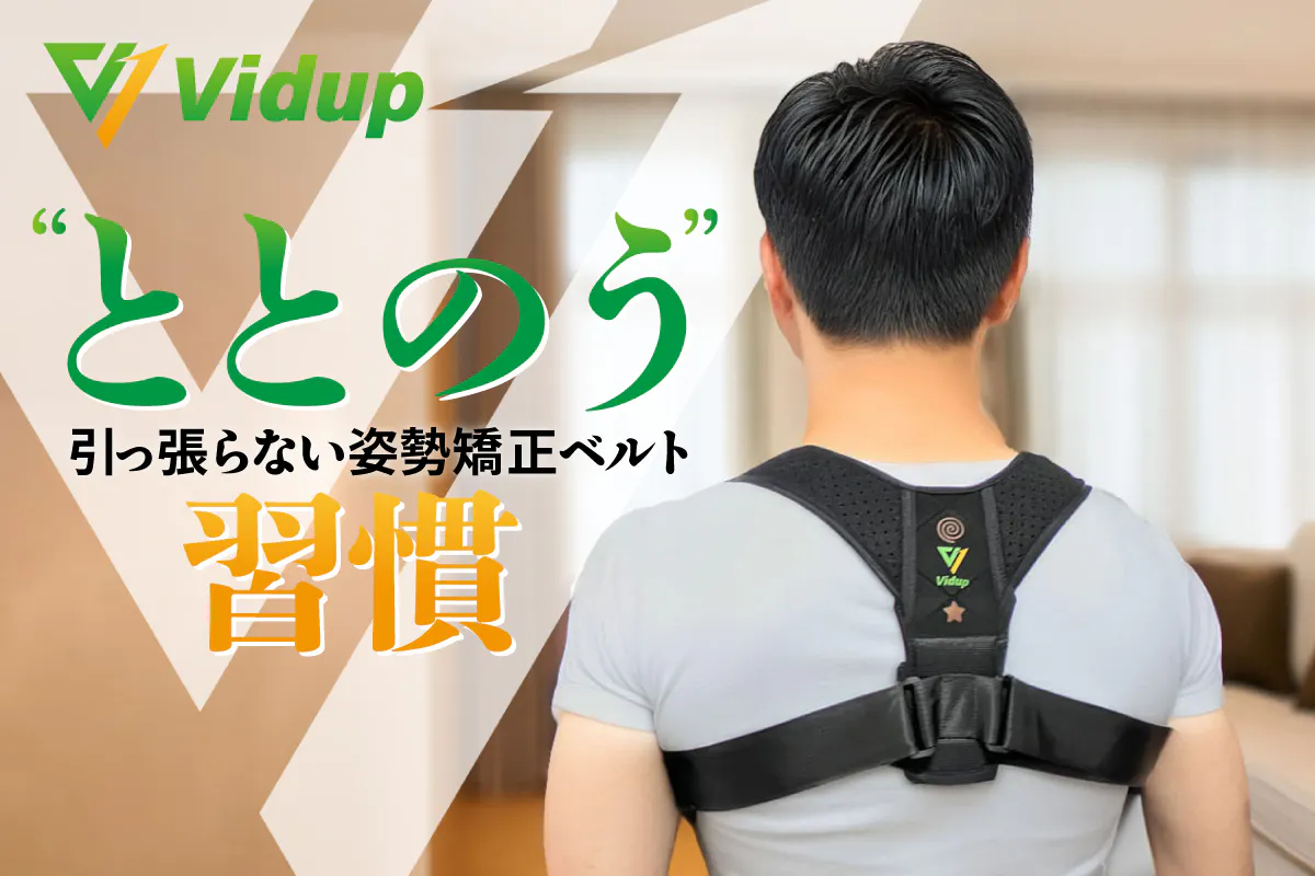Vidup(ヴァイダップ) 姿勢サポートベルトは着用により正しい姿勢に補整し、しゃきっとした毎日をサポートします。