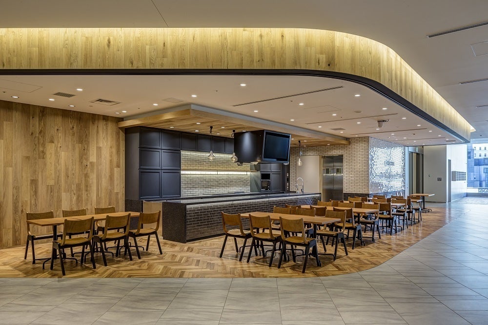 BASE Qにあるキッチンスペース、こちらにもマルシェの店舗が入り、美味しい空間を作ります。