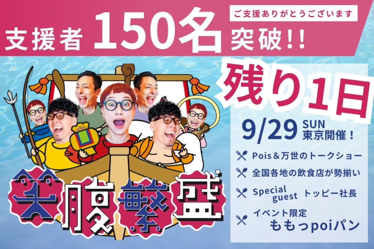 2024/09/11 15:25改めて皆様「笑腹繁盛」のプロジェクトへご支援、ご協力していただけてありがとうございました!!皆様のおかげでクラウドファンディングでも目標金額達成の先へといくことができました。本当にありがとうございました!今後も、イベントへ向かう姿をInstagramアカウント→こちらや公式LINE→こちらにて発信していきますのでよろしくお願いします! もっと見る