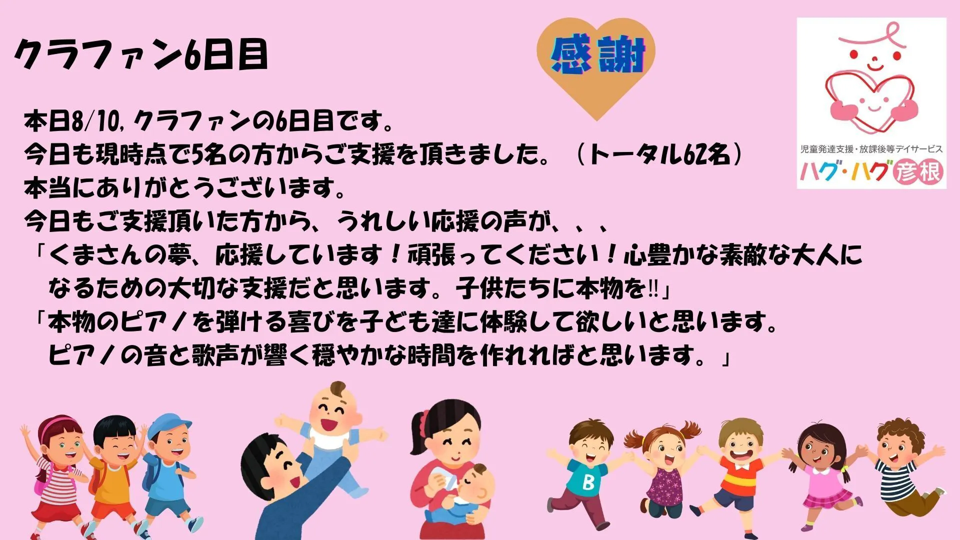 すでに62名の方からご支援を頂きました。