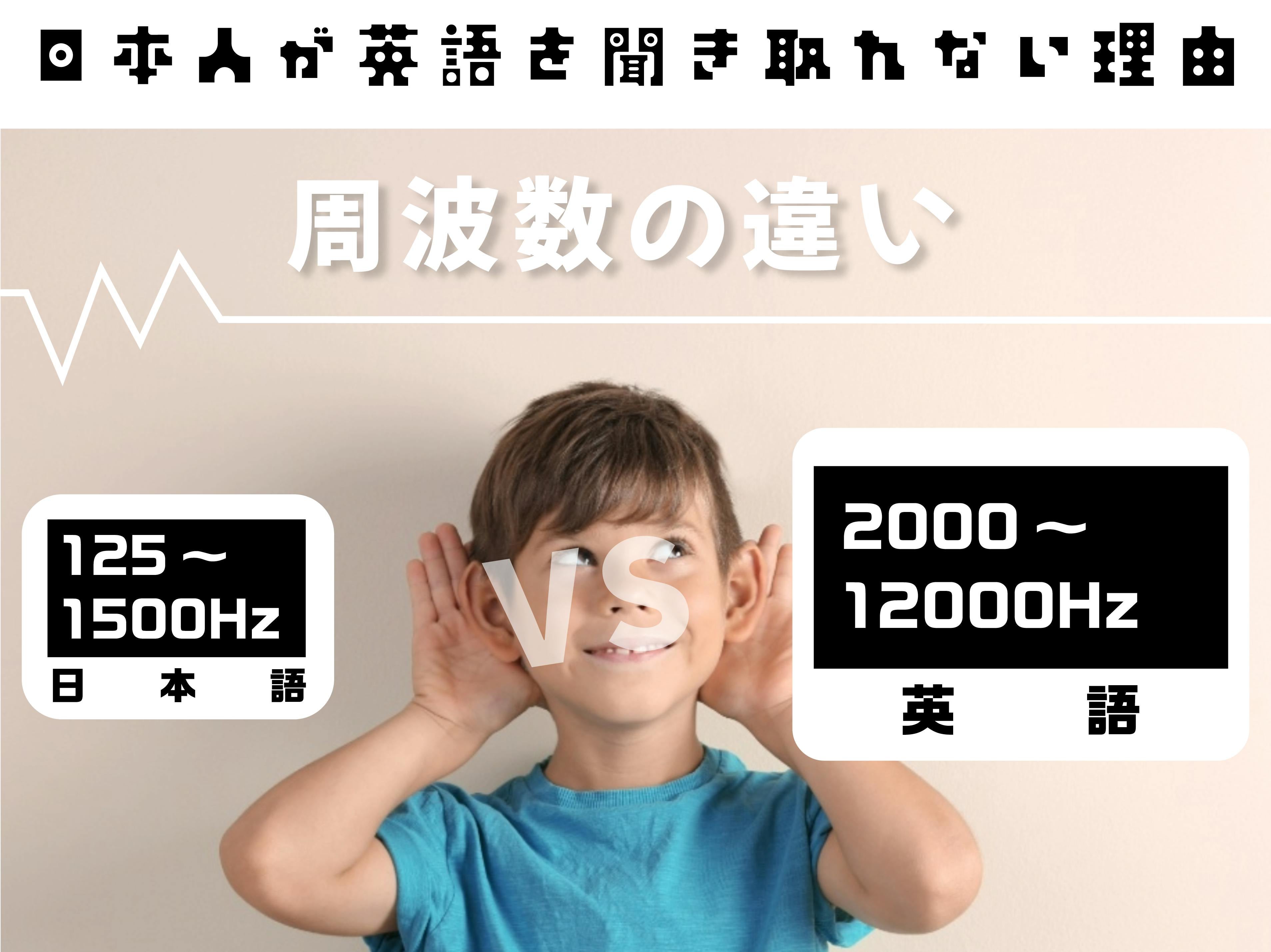 日本語の音域は125〜1500Hzが中心ですが、英語は2000Hz以上の高音域が多く含まれています。この違いから、日本語に慣れた耳には英語の高音がノイズのように聞こえやすいのです。だからこそ、耳が柔らかい幼児期に英語のリアルな音にたっぷり触れることが重要です。