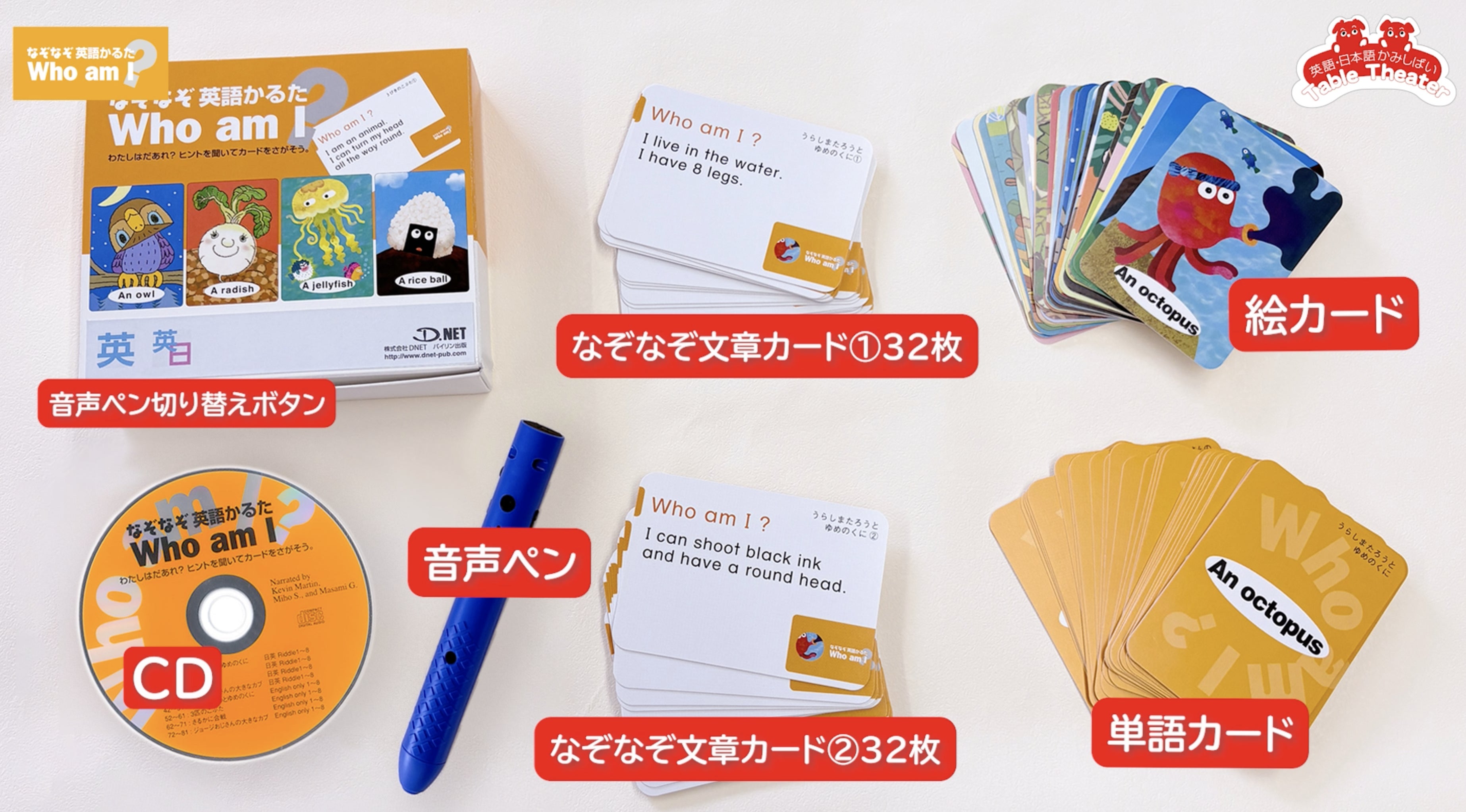 【早割】Vol.1とVol.2の「なぞなぞ英語かるた」+音声ペンセット+「英語・日本語かみしばい(5物語)CD付き」(限定10セット)