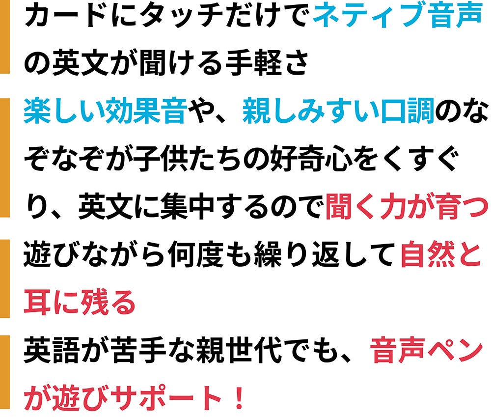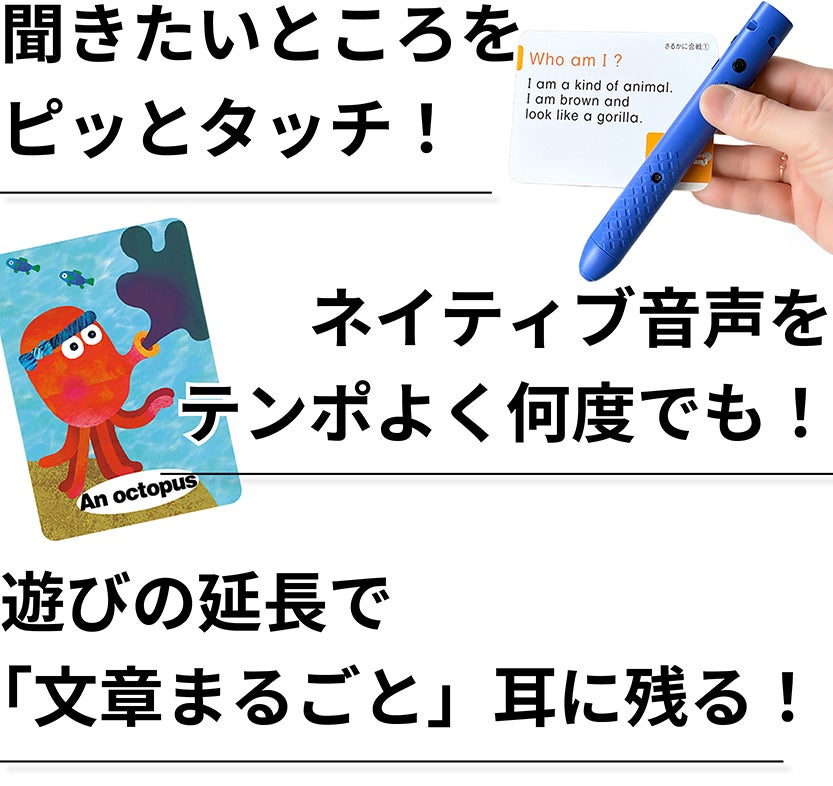 さらに、音声ペンがあればひとりでも繰り返し遊べるので、遊びの中で、いつの間にか英語の耳が育っていきます。