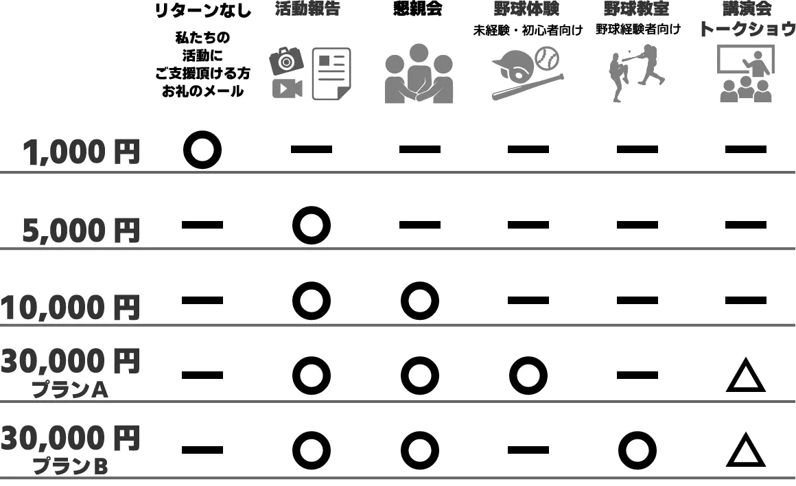 ※上記表△は野球体験・野球教室後にご希望に応じで講演会やトークショーを行います。