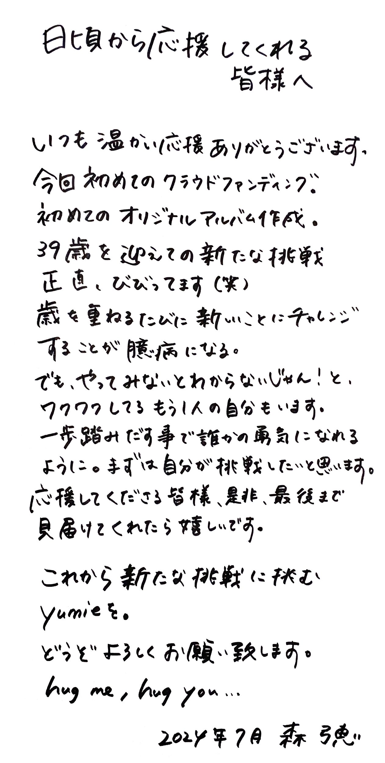 そして、このクラウドファンディングをきっかけに、もっと森弓恵のことを知ってほしい!